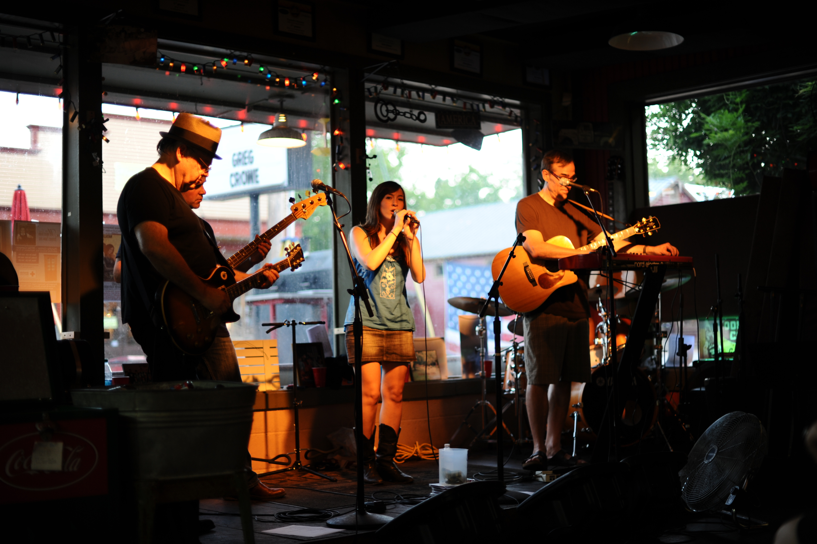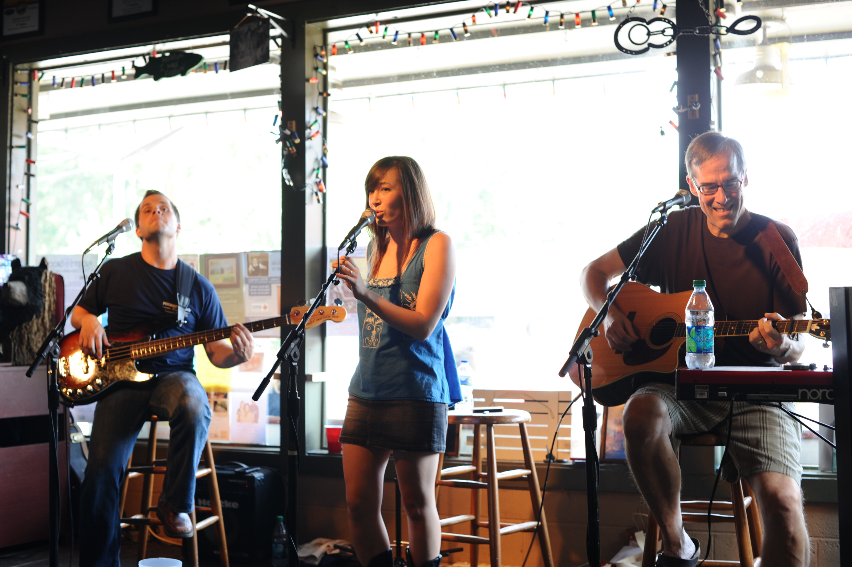 Happy Monday everyone! I’m still feeling a little worn out from the weekend (it started on Thursday night with the midnight showing of Harry Potter, which I’ll post about soon, then Friday night shooting a rehearsal dinner and Saturday night shooting a wedding, then last night I played a show with my dad and other awesome musicians at Puckett’s, so I’m feeling it this morning!) so I’m going to mostly leave the “talking” to the media in this post! First, though, I want to say thanks to Bob Goodrich who arranged the whole shebang last night out in Leiper’s Fork. Last fall, my dad and I entered our music into a silent auction at church to benefit the youth group: the deal was, the winner of our prize package got one evening of music on us. Bob has been coming out to my shows since I first started singing in Nashville my freshman year in college and he’s always been such an awesome fan! He won the bid for our music at the auction and set up a big birthday party at Puckett’s out in Leiper’s Fork, TN. Puckett’s is a grocery store / restaurant / all-around amazing little location about a 30 minute drive down Natchez Trace. It’s also a fantastic venue and they have music every Friday / Saturday night and for private parties like this one last night. The food was superb (Javi LOVES fried chicken and mac and cheese so he was thrilled with the menu – which was exactly that) and the crowd was just wonderful. My dad and I played with Michael Lehman (bass)  for the first set of acoustic tunes, then we had a break for dinner and afterward got back up with Dave Perkins and Cathy Chalmers (electric guitar and drums, respectively) to play some blues, rock and roll and gospel music! It. was. AWESOME! and a perfect way to end a crazy fun weekend! The best part is that Pucketts booked us for a Saturday night show in August!!!!!!!! More details on that coming soon…in the meantime, enjoy these videos / photos of the night (thanks to media coordinator, Javier).
