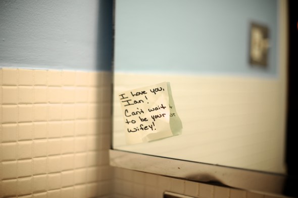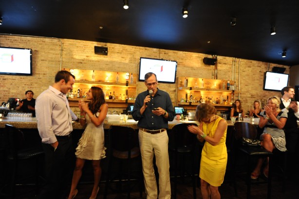 | Ian and Andrea met for the first time at Moe’s on St. Patrick’s Day 2008 – Andrea was bartending and she told Ian he was cute; he was obviously smitten because he wrote “Ian – brunch tomorrow?” and then his phone number on a cocktail napkin and slipped it to her. 3 years later, the napkin is framed next to a picture of them on their wall (remember this – it’ll be an important detail in the next post about the wedding!). My folks rented out the top room of Moes for the rehearsal dinner, so we had an open bar all to ourselves plus a Mexican buffet for dinner! That event itself could have counted as a mini wedding reception – there were at least 80-100 people there and it was an AMAZING party! The speeches were fun (I gave one and cried through all of them), there was a slide show and a bunch of Ian’s friends got together to do a musical roast to the tunes of Saltwata (someday I’ll write about my brother’s other life as a rapper with the stage name Saltwata, affectionately known to some of his friends as Salty). It was an all-around wonderful night and a fantastic way to kick off the official wedding festivities. | Ian y Andrea se conocieron por primera vez en esta cantina en dia de San Patricio el 2008 – Andrea trabajaba en la barra y le dijo a Ian que era buen mozo; el obviamente no dejo pasar la oportunidad y le invito a tomar desayuno al otro dia escribiendo en una servilleta “desayuno manana” con su numero de telefono. 3 anos despues la servilleta esta enmarcada y colgada en una muralla de su apartamento. (Acuerdense de ese detalle, sera importante en un futuro post sobre la boda!). Mis papas arrendaron el segundo piso de la cantina, asi que tuvimos bar abierto y comida mexicana de cena! Eso solo se podia haber contado como celebracion del matrimonio, habia entre 80 y 100 personas y fue una fuesta genial! Los brindis fueron entretenidos (Lo llore todo), hubo un video con fotografias y un monton de amigos de Ian crearon un video musical para reirse del pasado rapero de Ian como “Saltwata”. (algun dia tengo que escribir sobre eso). Sumando todo, la noche fue fantastica y una excelente manera de empezar la celebracion. |