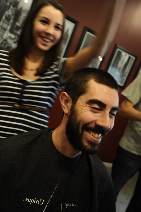 | After that little outing we went to Halo salon for men, which my brother rented out for 3 hours on Thursday afternoon for all his friends plus Javi, my dad and my cousin. Their pampering included a hot shave or a beard trim, a hair cut, hand wax and hand / head massage…and for those who were brave enough, eyebrow wax or trim. They brought in a cooler of drinks and had highlight videos from Ian’s highschool basketball days playing on a flatscreen on the wall all afternoon – a great weekend kickoff for them. I went along to document everything with my camera, of course, so I’ll be posting many photos from this experience on my photography blog in the coming month or so. | Luego de nuestra pequena aventura fuimos a un salon de belleza para hombres llamado Halo, el cual mi hermano arrendo por 3 horas el Jueves en la tarde para todos su amigos mas Javi, mi papa y mi primo CJ. Los servicios incluyeron efeitada caliente y retoque de barba, corte de pelo, masaje de manos y cera para manos…y para aquellos mas corajudos arreglo de cejas. Ellos trajeron un cooler con cervezas y pusieron un DVD con videos de buenos momentos en partidos de basketball de los tiempos de Ian en el colegio. Yo tambien vine con mi camara y saque fotos de todo, por supuesto, asi que pondre mas fotos de exta experiencia en mi blog de fotografia en unas semanas. |