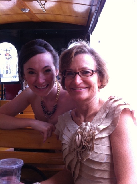 The bridesmaids all had hair and makeup appointments in the morning, then we all rode over to the church in a trolley they rented for the day. To transport the guests from the hotel to the church and back, Ian and Andi rented a double decker bus (so you can see why they were hoping for clear skies) and the wedding party got to ride in the trolley all afternoon. The guys came after the ladies (my brother was ADAMANT about not seeing / hearing Andrea before the wedding) and then it was wedding time!