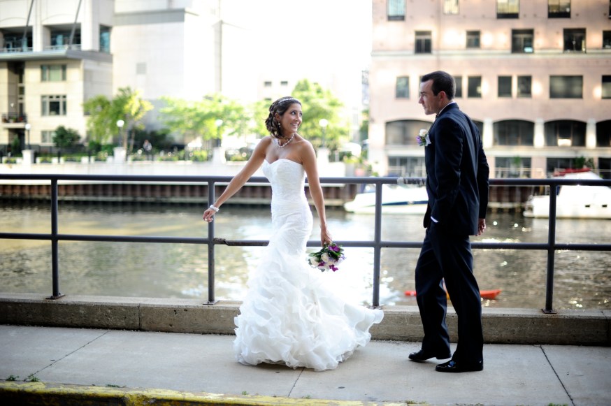 Luego de que Ian y Andrea aparecieran por primera vez como marido y mujer afuera de la iglesia en Michigan Avenue, era tiempo de sacar fotos. Nos subimos al trolley (con los amigos de Ian y Andi) y teniamos coolers con champana, cerveza, y tequila. Fuimos directo al lago Michigan donde tomamos algunas fotos y casi muero atropellada por 2 ciclistas que pasaron a centimetros de mi camara. Una vez que Javier se recupero del ataque al corazon despues de ver que casi tengo un accidente, sacamos todas las fotos en ese lugar y nos fuimos a Wrigley Field (el estadio de baseball de los Chicago Cubs) a sacar mas fotos bajo el letrero del estadio. Esas fotos salieron muy buenas y espero tenerlas listas pornto para compartirlas! Nuestro destino final fue un puente al lado del hotel donde era la fiesta y aprovechamos las buenas condicinoes de luz para sacar mas fotos. Son, en mi humilde opinion, in-cre-i-bles y no puedo esperar mas para poder compartirlas. Las pocas que he mostrado estan en mi pagina de facebook, pero pronto pondre mas en my blog de fotografia y mi website cuando esten listas!