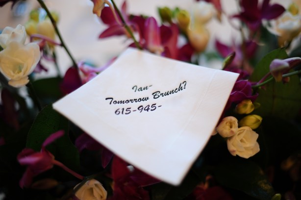 The cocktail hour followed the 2 hours of photo time and trolley partying. Now if you’ll think back to when I described Ian and Andrea’s first meeting and then remember the napkin I mentioned that he wrote his name and number on, then picture around 1,000 (?) napkins with “Ian – brunch tomorrow?” and then his number printed on them for the cocktail hour! It was beyond perfect. Hopefully he doesn’t get a million calls from random folks now that his number has been floating around with a couple hundred tipsy wedding guests and their cocktails!