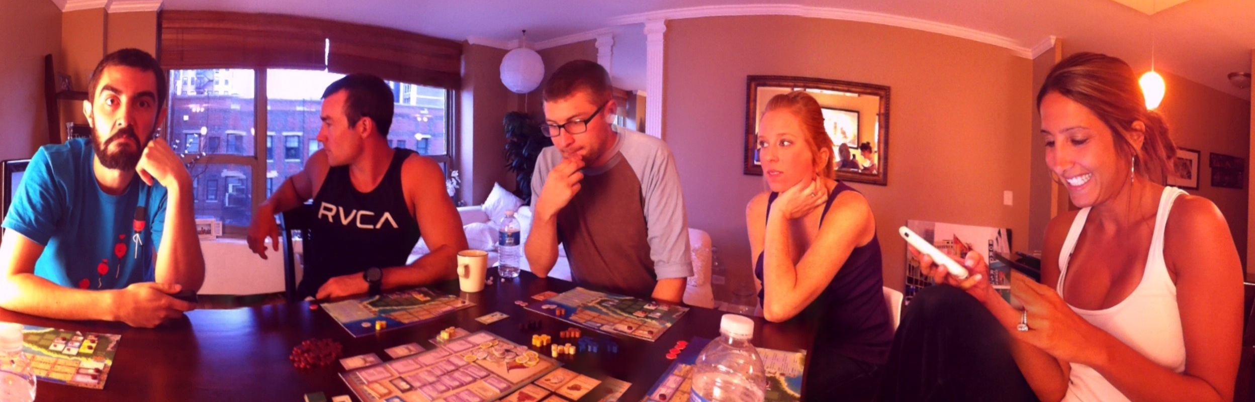So I’d say despite that the weather, this weekend was another total success in Chicago. Our big entertainment was the board game Puerto Rico that I described in our last post – we played again last night with Ian and Andi and their friends Taylor and Laura while watching NFL preseason games. It may sound like an oddly low key way to spend a Saturday night in Chicago but it was really nice to hang out with Ian and Andi and relax – I only have a week and a half til the semester starts back up so I need to get as much relaxation in as I can! Which reminds me, this will be the first time that i will be starting up a semester and Javi won’t have any classes…weird.
