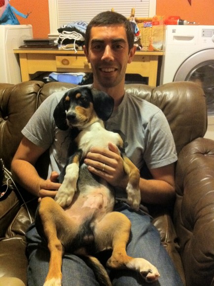 So now I’m enjoying my last couple of days of summer before homework and research take over completely. We got our pups back yesterday…Choripan is getting SO big now! He still thinks he fits perfectly on our laps so he’s soaking up quality time on our legs until he can’t fit there anymore. The picture below is a knockoff of the original picture with Chupete back in March (also posted) – our pups are the cutest.