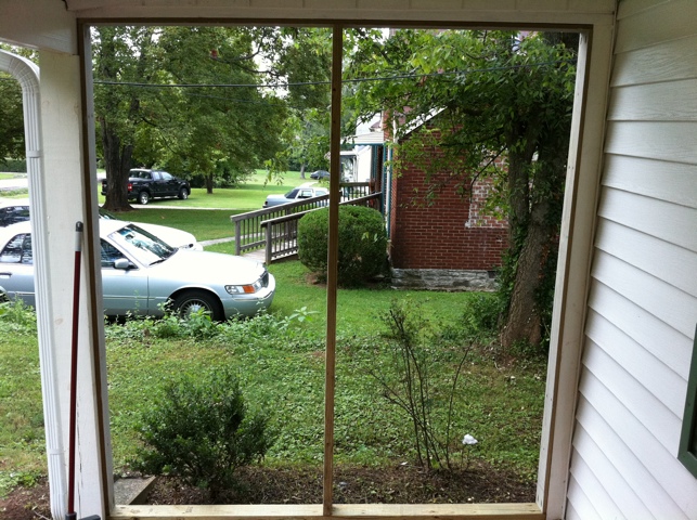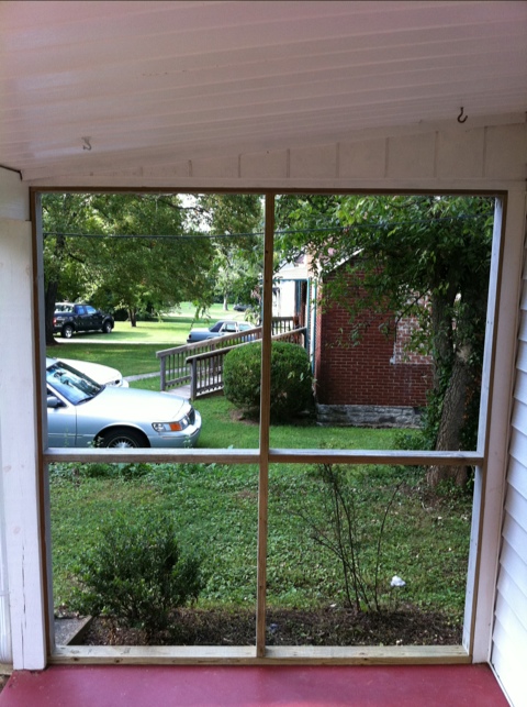 La solucion….poner malla en el porch! Es un muy buen proyecto para hacerlo tu mismo y una escusa perfecta para usar mi sierra nueva! La verdad es que neustra casa solia tener malla en el porch, pero la madera se estaba pudriendo y la gente que queria venderla sacaron todo para que se viera mejor en los ojos de los compradores (funciono con nosotros……supongo!)