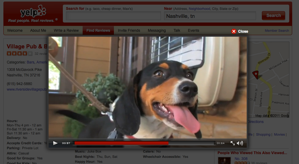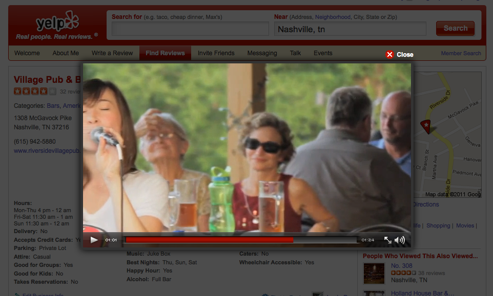 Pero este post no es para contarte lo bueno que es este lugar, es para contarles que somos parte de su video de promocion en Yelp.com. Para ver el video hagan click en este link (http://www.yelp.com/biz/village-pub-and-beer-garden-nashville) y en la ventana que tiene fotos arriba a la derecha, hagan click en la opcion View Video.