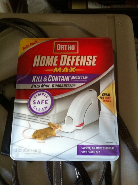I hated the thought of killing the mouse, but they carry viruses and bacteria that I dont want around, so at least I got a trap that would give him a quick death.(Better than poison and the following smell)…I got him!