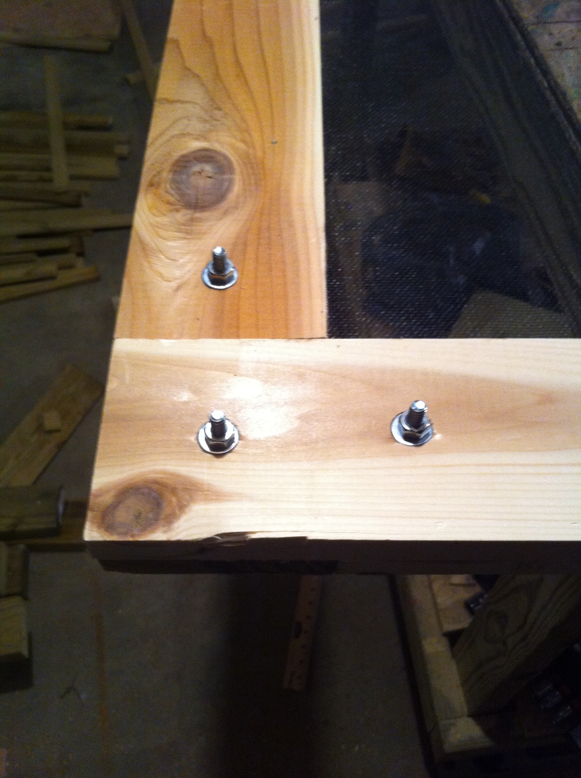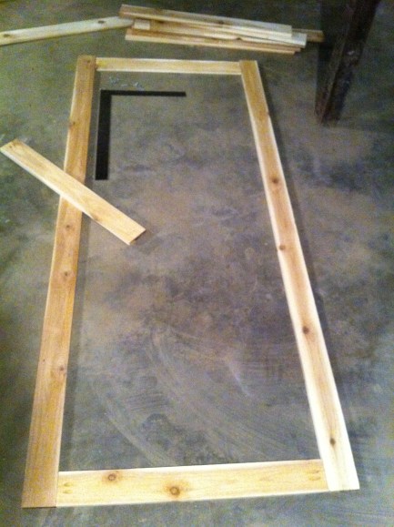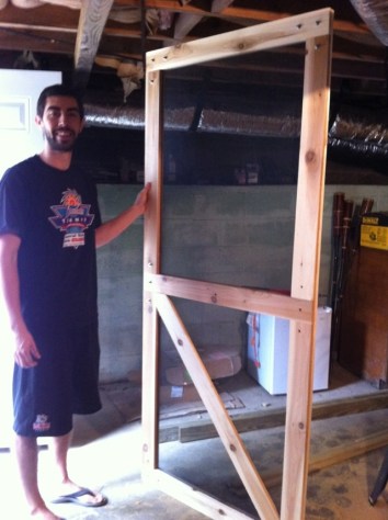 I needed a type of wood that would resist rotting and wouldn’t warp easily. I decided to use Cedar, it has the characteristics I needed and it’s not too expensive. I made two frames, installed the screen in the inside of one and cover the staples with the other frame. I attached them using hex bolts and installed hardware.