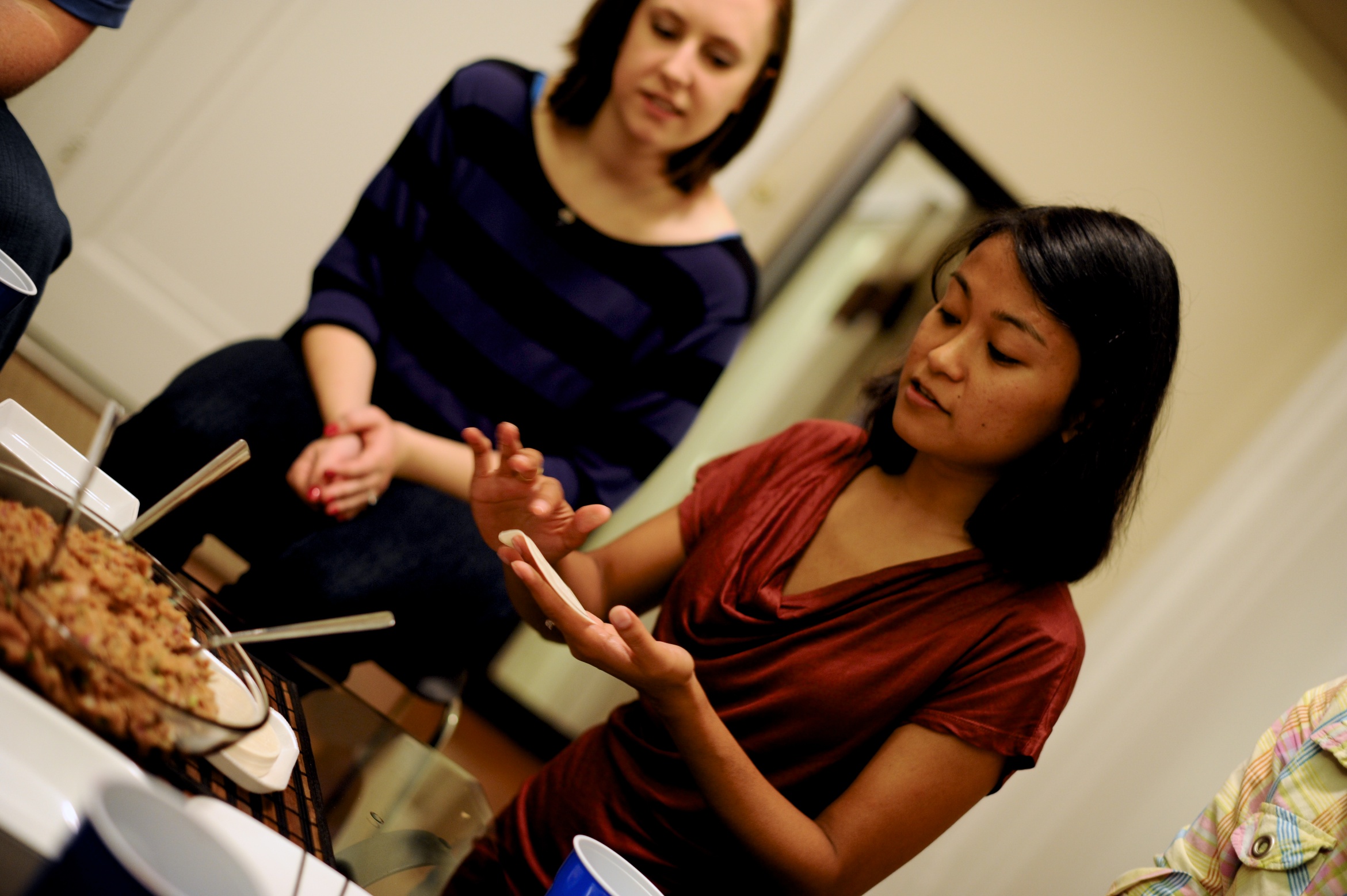 Apparently there are several ways to wrap the innards of the dumpling up, and some of the methods were pretty artsy (and difficult)! Bhumika showed us how to make the most basic version and then showed us the more complicated, pretty ways to fold them, which I was never able to master. We had some pretty creative looking dumplings in the end. The final products were absolutely delicious (despite their strange shapes) and I’m so glad to know how to make them now. It was great to spend some time with the cohort too – I’m so lucky to have such an awesome group throughout this crazy grad school adventure. Below are some photos of our evening!
