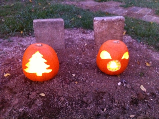 We carved our pumpkins and lit up the jack-o-lanterns on top of our fake graves to let kids know that we meant business. John, Joan, and Annie came by (they really wanted to see the kids dressed up) and we hung out on the front porch until the kids started to show up. Our house was the only inviting house in the entire street. Everyone else had lights off and no candy which was kind of a drag, but we understand if people dont want to have to deal with kids knocking on their doors (I guess…). We still got some cool characters that showed up asking for candy, so overall we had a good time hanging out and handing out candy. How was your halloween??