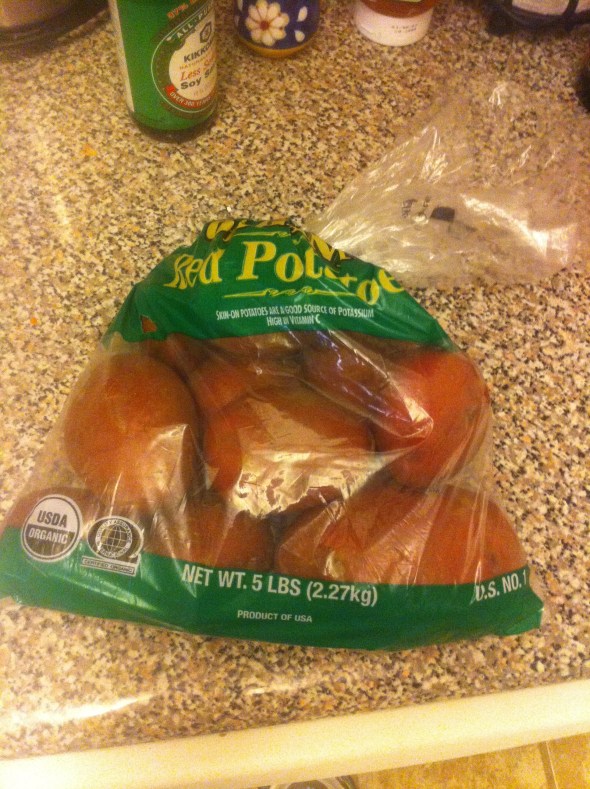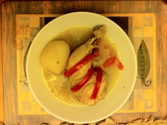 Basically, you need a couple of big pieces of meat – as many as the number of plates you are planning to serve(we use chicken quarters from Emerald Glen Farms – if you use beef then it’s not chicken soup anymore obviously, but Javi says he’s heard of making it with ribs or some other meat), as many potatoes as you use pieces of meat, 1 red pepper, 1/2 an onion, 1/4 cup of rice, a few carrots and enough water / chicken broth to cover everything in the pot. Add salt at the end to make sure is salty enough. You can also add chives, garlic, or other spices that you may think will taste good.