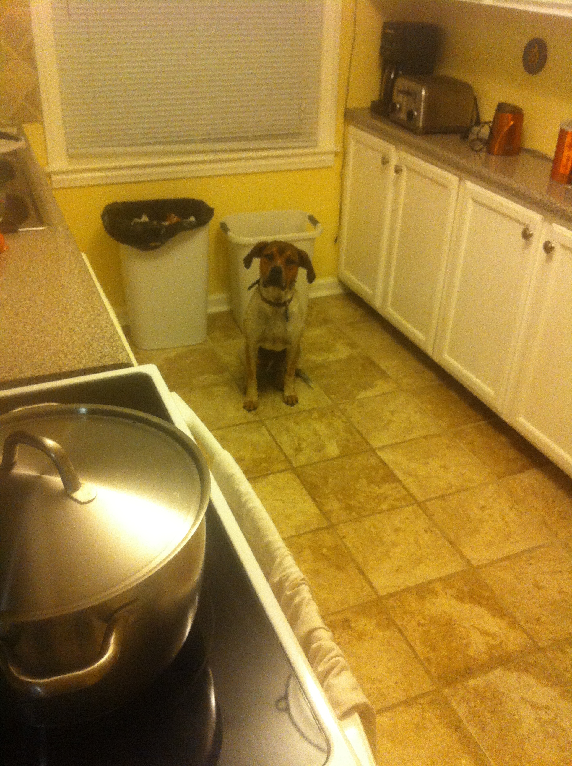 Si necesitas ayuda extra, siempre puedes reclutar a tu perro para que cuide la olla. Chupete…es el guardian de la olla!