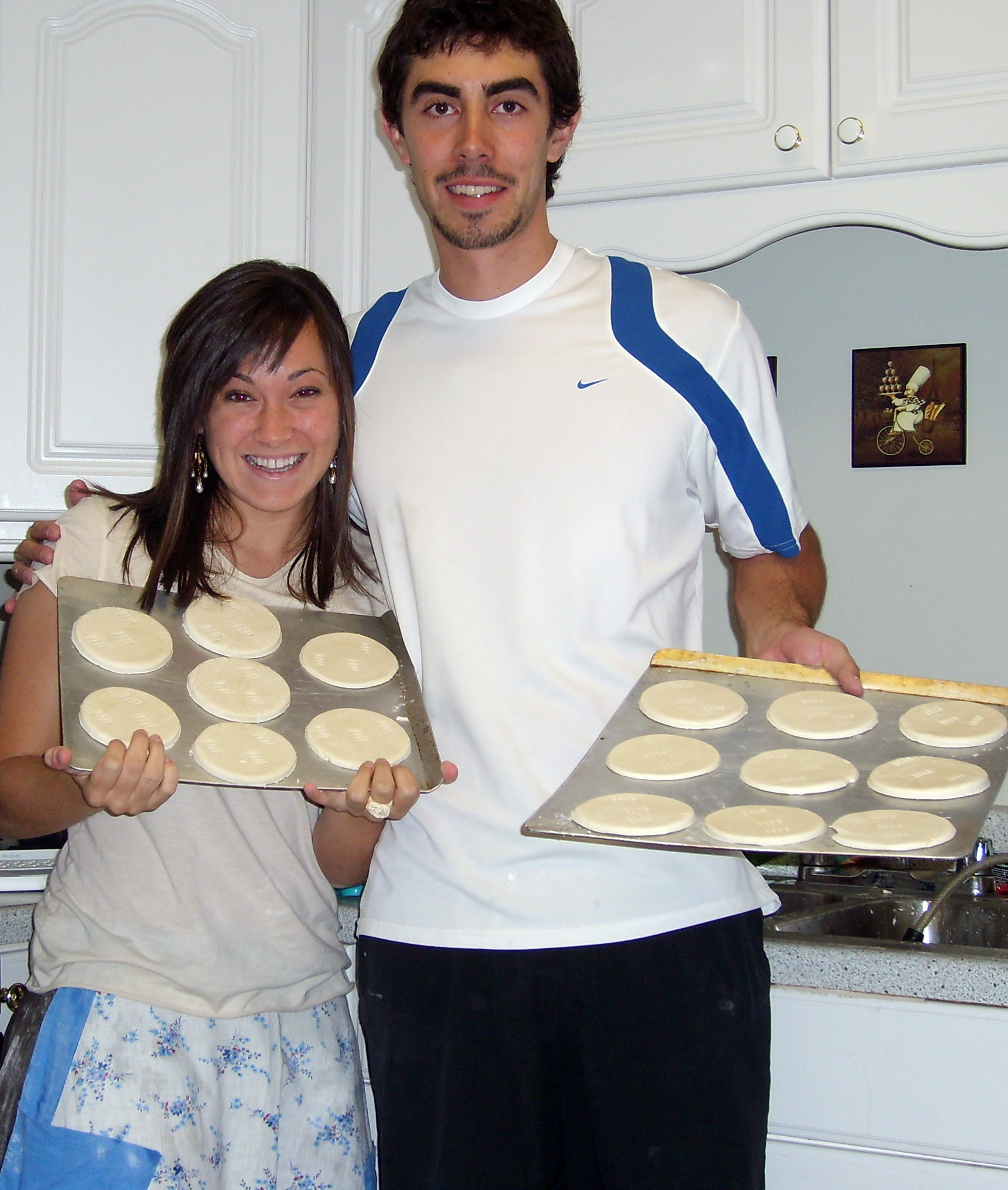 Cut up the onions and peppers, peel the potatoes but keep them whole, put the chicken quarters in the broth with the rice (uncooked), throw in some salt (again…to your taste) cover and let it cook, boiling until it’s done (35 to 50 min). You can also add some corn on the cob if you want….we didn’t this time around but we have before and it’s delicious. When you serve the soup, give each person a whole piece of whatever meat you use, a whole potato, a piece of the corn on the cob if you use it. I usually can’t eat my whole portion…it’s alot of food! I think Javi plans it that way though…more for him I guess. Let us know if you try it out and like it! Chilenos de corazon unite!
