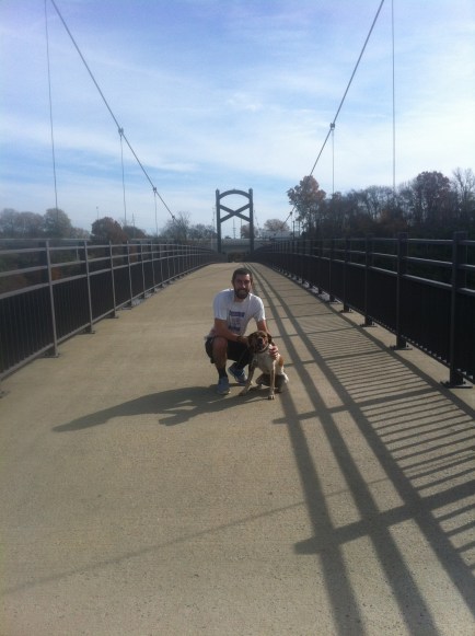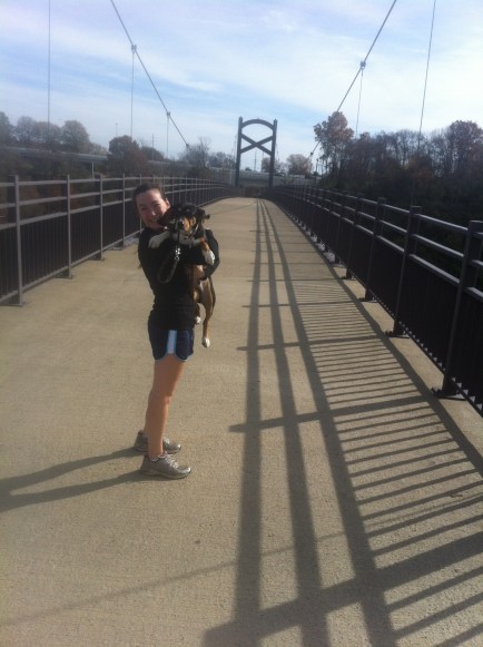 I started off the weekend right with a beer and pretzel at the Village Pub with my friend Lauren, and afterward we went to the Pied Piper with Javier and Lauren’s fiancee Matt, which Javi already wrote about. On Saturday I woke up pretty early and Javi and I took the dogs out for a run on Shelby Bottoms Greenway (hello – yet another reason we love our neighborhood). We’ve been trying to get more exercise for ourselves and the dogs lately, so we started running about a month ago around our neighborhood (I’ve been running for a few years but Javi NEVER wanted to run with me before – it’s so much more fun for me to have some company!!). So far we’ve only been able to map out about a 1.6 mile run in our immediate neighborhood, but the greenway is only 2 minutes from our house so we tried it out for a 3 mile run on Saturday morning. It was perfect! It was totally empty (I’d never run it alone – too lonely) and we managed a nice 1.5 miles out, stopped in the middle of a bridge and snapped a few photos, then turned back and ran the 1.5 miles back. Lovely.