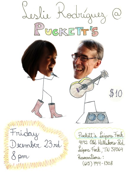 We want to make sure we emphasize that this will be a Christmas show – so BRING YOUR FAMILIES AND FRIENDS for fun Christmas entertainment!! Who needs the Rockettes when you can listen to the McClure/Rodriguez duo at Pucketts?? Javi just updated the flier this morning to echo the Holiday sentiment. Enjoy!!!