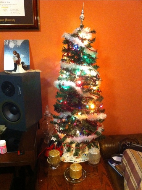 | Anyway, so that’s the end of our lovely weekend. Oh, and I went ahead and decorated as soon as I got home…so yeah. I’ve had my Christmas tree up for a week. Happy Thanksgiving! 🙂 | Pero bueno, ese es el final de nuestro muy feliz fin de semana. Oh y apenas llegue a casa esa noche me puse a decorar….asi que mi arbolito ya ha estado alumbrando hace 1 semana! Feliz dia de accion de gracias a todos!!! |