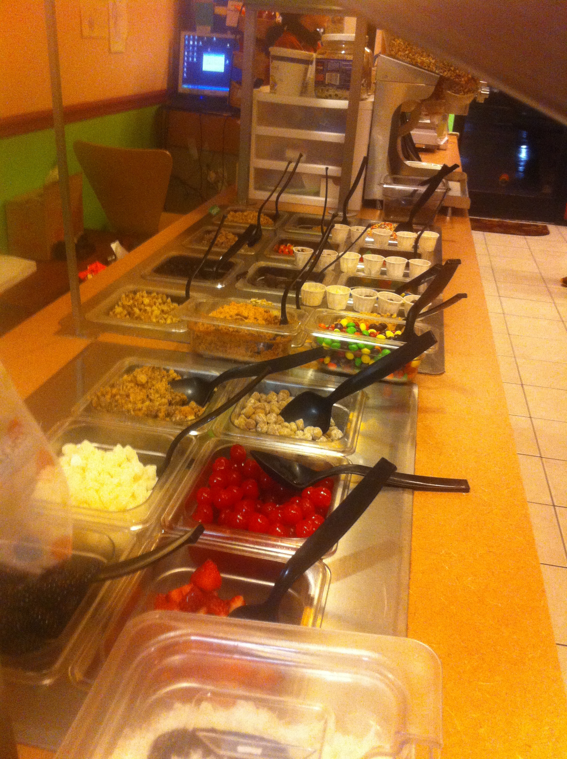 It was great to have a conversation with the owner and learn more about her story. She and her husband owned a sushi restaurant in Hillsboro Village for 18 years, but last year their building lease wasn’t renewed so they had to move. (side note: any other Nashvillians remember that little sushi spot? I LOVED their bento box and lunch special…so sad they had to close. Turns out they were really sad about it to too…and we were all sad to relive the story while eating fro-yo) They found a new location in the Green Hills area and opened a frozen yogurt shop / sushi place. The business wasn’t as good as their old place in the village but they were ok until Sweet Ceces opened in Green Hills and the number of patrons started dwindle. Her rent is twice as high as what it used to be in Hillsboro Village, which is pathetic because the location isn’t exactly ideal. You have to pass Sweet CeCe’s, drive around the block to the back of the shopping center and go into a small strip mall to get to her place. She and her husband are also obligated to work 7 days a week now – they can’t afford to hire anyone else, and they won’t ever be able to unless her client base grows. They invested a bundle of money into this place and they are hoping things will get better.