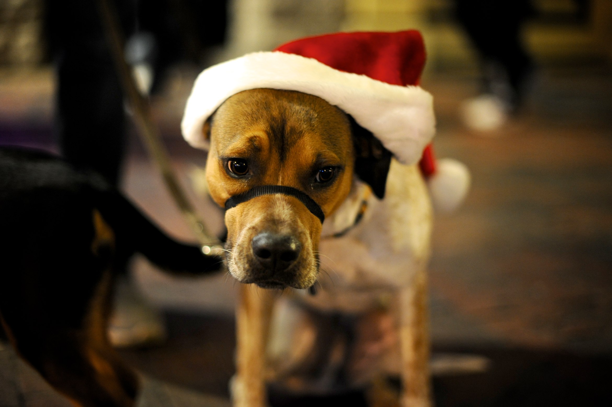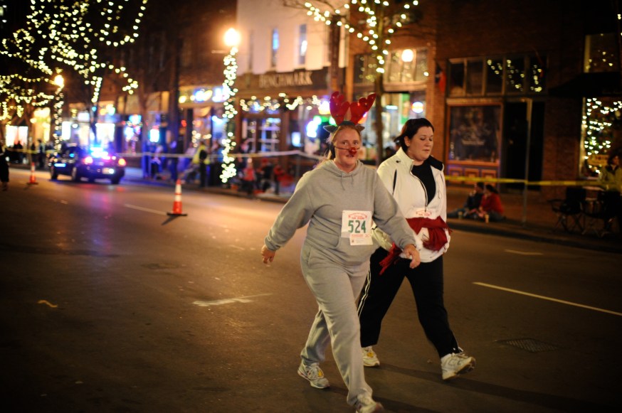 It started out okay – they do pretty well with lots of people, the only thing was that there were so many smells all over the place and Chupi (being the hunting dog that he is) just couldn’t get enough. But that was normal, and not a big deal. Then the 5k opened up the parade, so there were tons of people running by, some dressed up in crazy Christmas costumes, but still, no big deal. The first 2 minutes were exciting for the pups, but they got used to it. Then the trouble started.