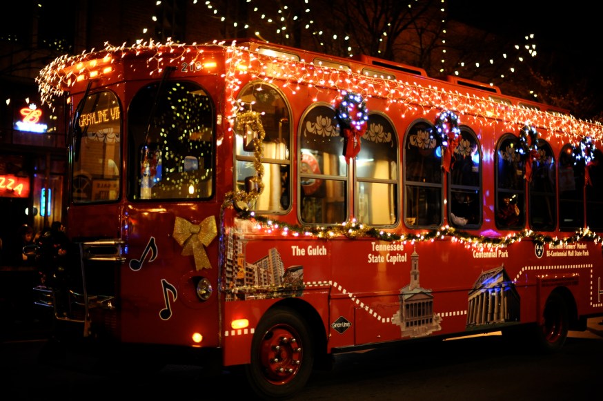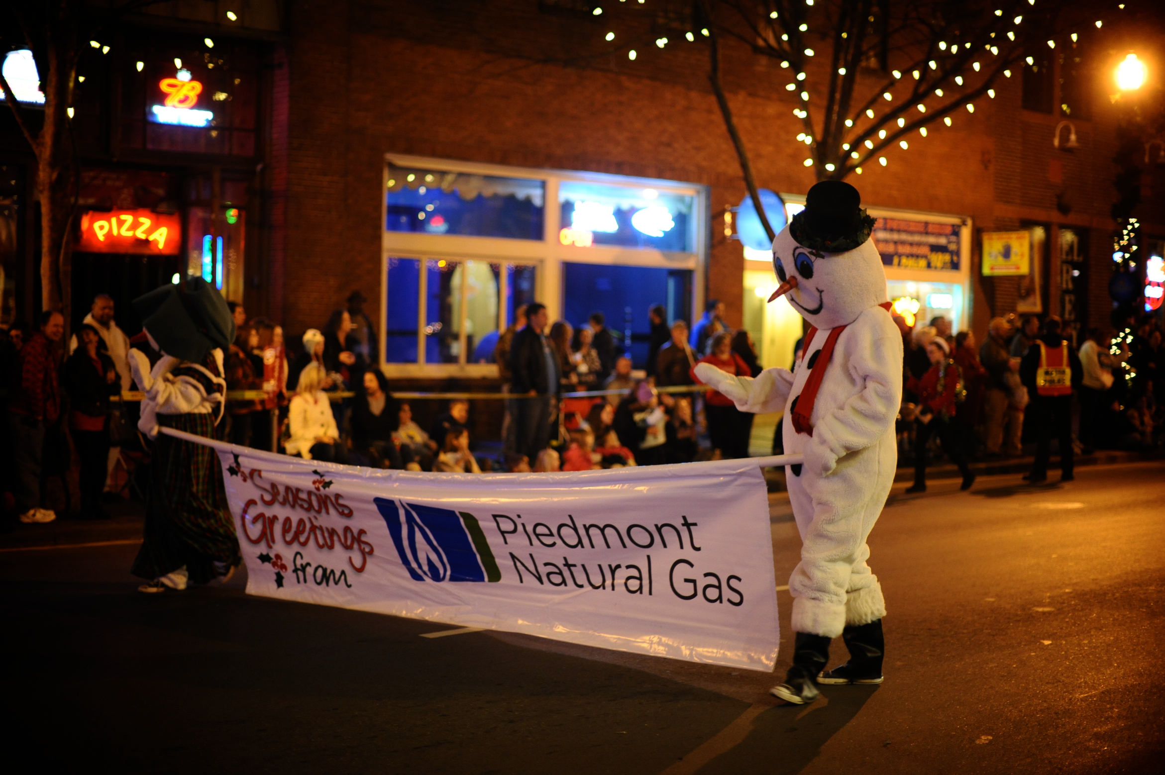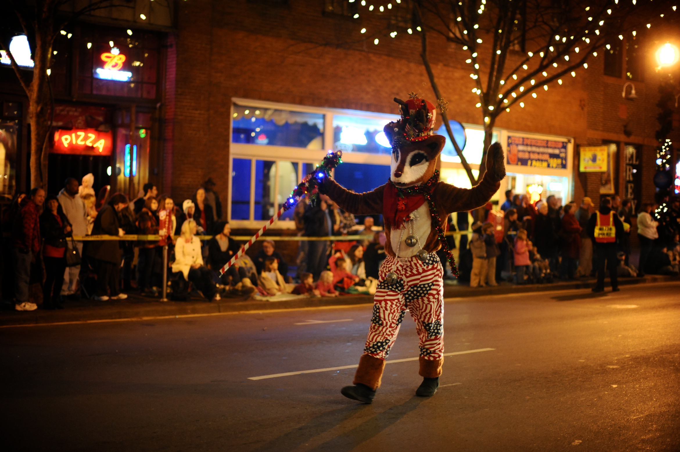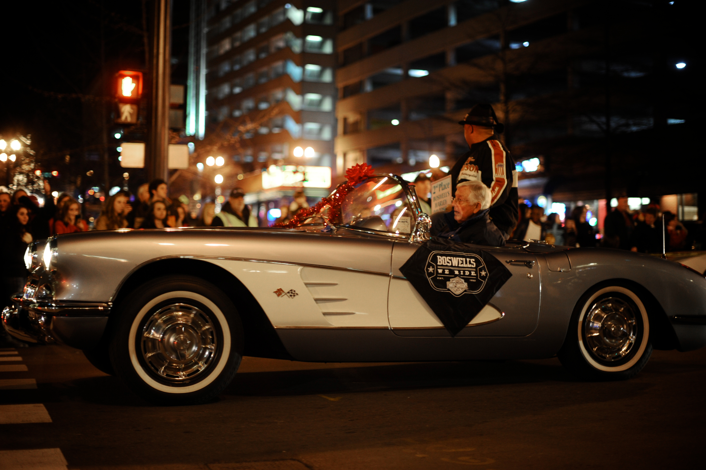 It all started out in the afternoon when Javi got off work early. The Christmas Parade was going on Friday night downtown where he works and his office got out early so they could beat the traffic nightmare. We wanted to take the dogs for a long walk to tire them out, but we didn’t want to walk in the dark without reflectors. We’ve been thinking about how they need more human interaction, so we decided to take them down to the Christmas parade where there would be plenty of people and distractions and they could learn to adapt to a crazy situation.