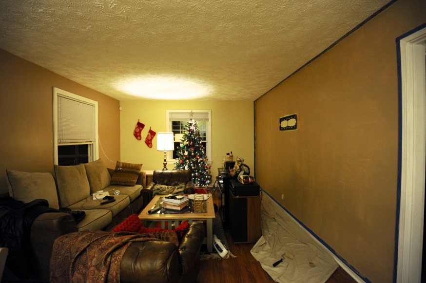 Below are a few before and after pictures, including a great juxtaposition of the tree with the old and new colors behind it. Enjoy! Aqui van unas cuantas fotos del antes y despues, incluyendo una superposicion de nuestro arbol de navidad con los colores antiguos y nuevos para comparar. Disfruten!