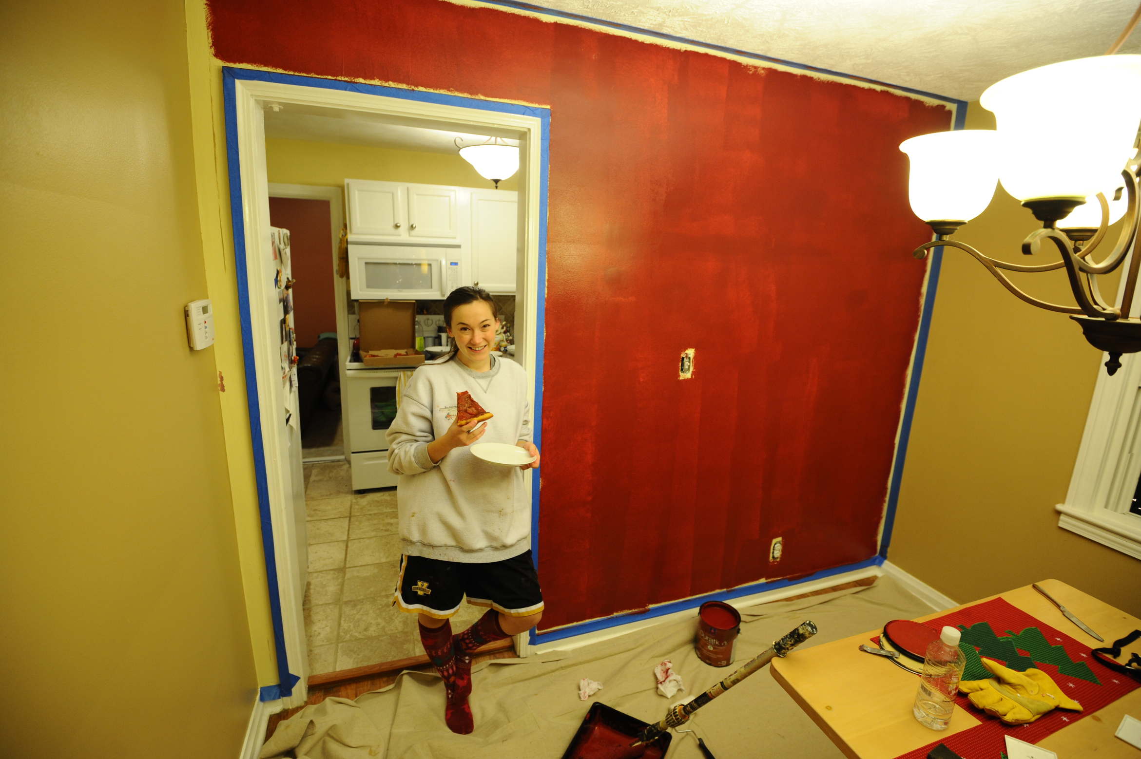 I know I know, so fashionable for our anniversary…I don't have pants to paint in and it was cold because our windows were open so I needed socks!! hahaha