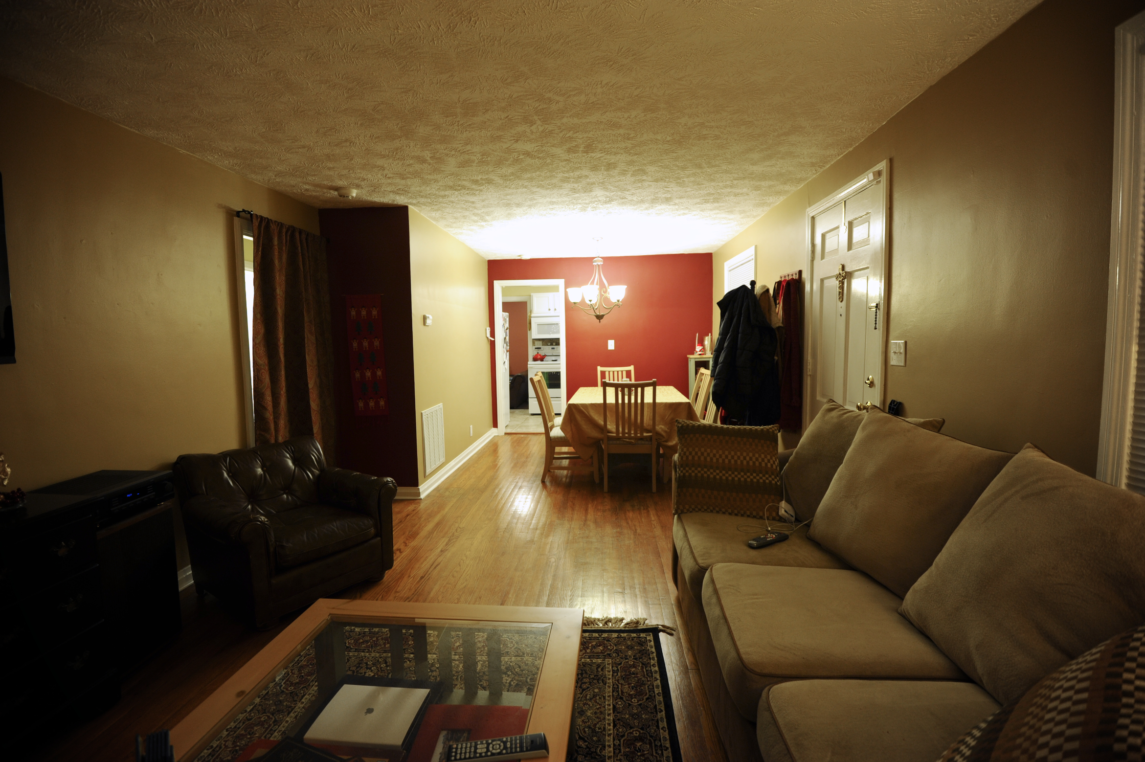 Our living / dining room is all one room and it’s pretty long, so we thought one color would be too much. We spent FOREVER at Sherwin Williams picking out colors and finally chose a medium shade of brown for the big walls and then a “sun dried tomato” color for the smaller walls on either end. Ahhhh it’s such a perfect mix! I’m so happy with the end result. I also can’t believe we finished so quickly! It was a major pain moving all the furniture around, taking the TV off the wall and everything else, but it was so worth it. We also got one of those cable covers for the cables coming out of the TV, so now you can’t see a million black cables all over the wall which makes everything look much cleaner. Nuestro living/comedor es todo una sola sala y es bien larga, asi que pensamos que un solo color seria mucho. Pasamos una ETERNIDAD en Shewin Williams escogiendo colores y al final elegimos una sombre de cafe para las murallas mas grandes y un color “tomate seco” para las murallas mas pequenas a los extremos de la sala. Ahhh es una mezcla perfecta! Estoy tan feliz con el resultado. Y tampoco puedo creer que lo hayamos terminado tan rapido! Fue casi doloroso tener que mover todos los muebles, sacar la tele de la muralla y todo eso, pero valio la pena. Tambien compramos uno de eso organizadores de cables, para los cables de la television, asi que ahora no se ven millones de cables colgando en la muralla y todo se ve mucho mas limpio.