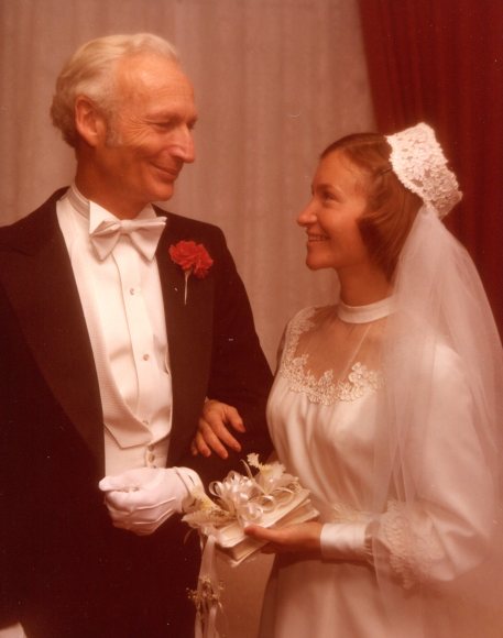 My parents had about 600 guests at their wedding, mostly due to the fact that both of my grandfathers were pastors of gigantic churches and the congregations from each church were invited. Their receiving line was so long that they never made it to their reception! The picture of them with the cake is from BEFORE the ceremony – they never even got to taste it afterward.