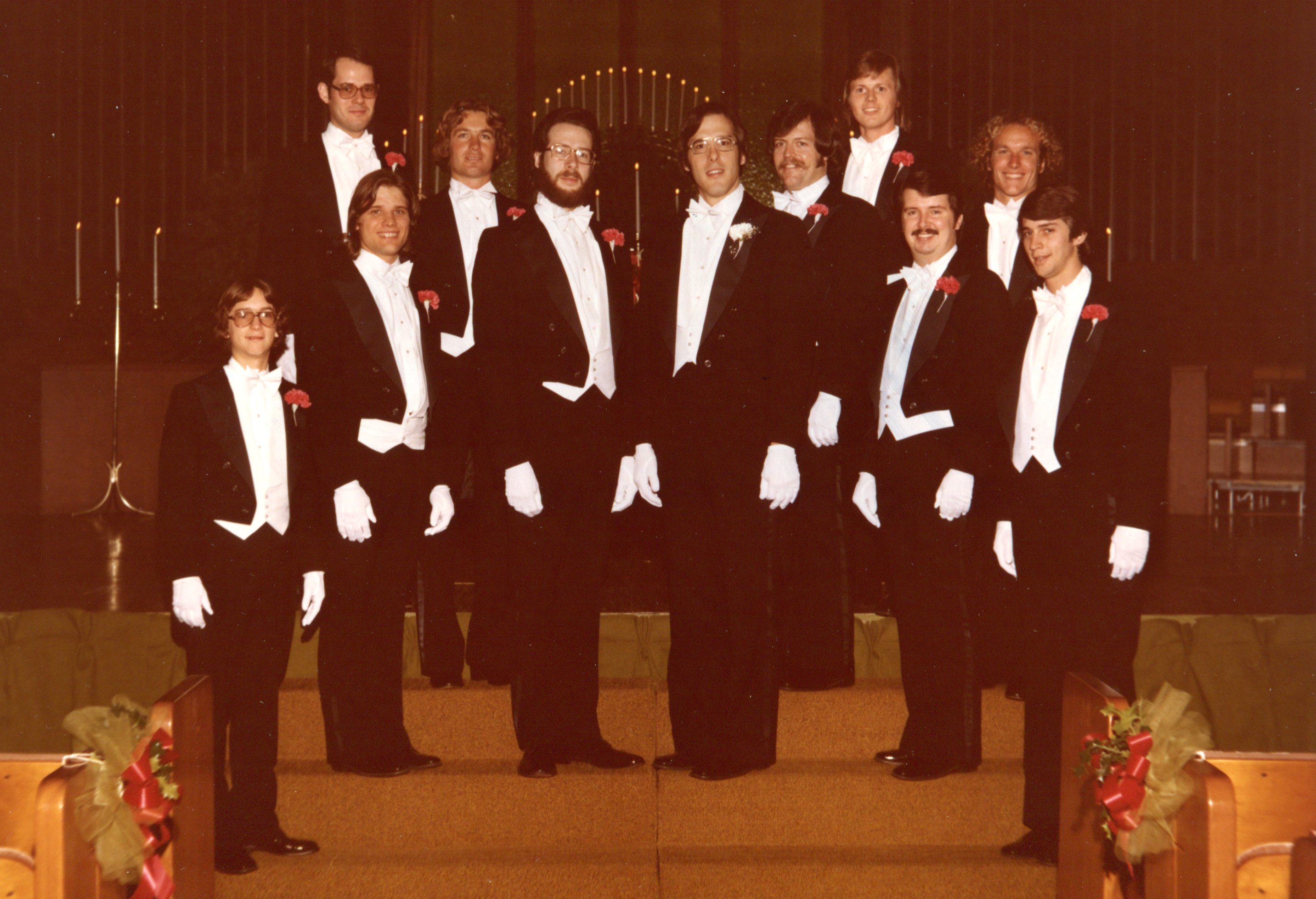 La boda fue muy formal, con los hombres usando trajes de cola y guantes y las mujeres vestian vestidos largos.Javi y yo sabiamos que no queriamos una boda tan formal, pero aun asi todavia me encantan las fotos de mis papas todo arreglados, especialmente de mi papa con guantes. Fantastico. Mis papas son geniales!