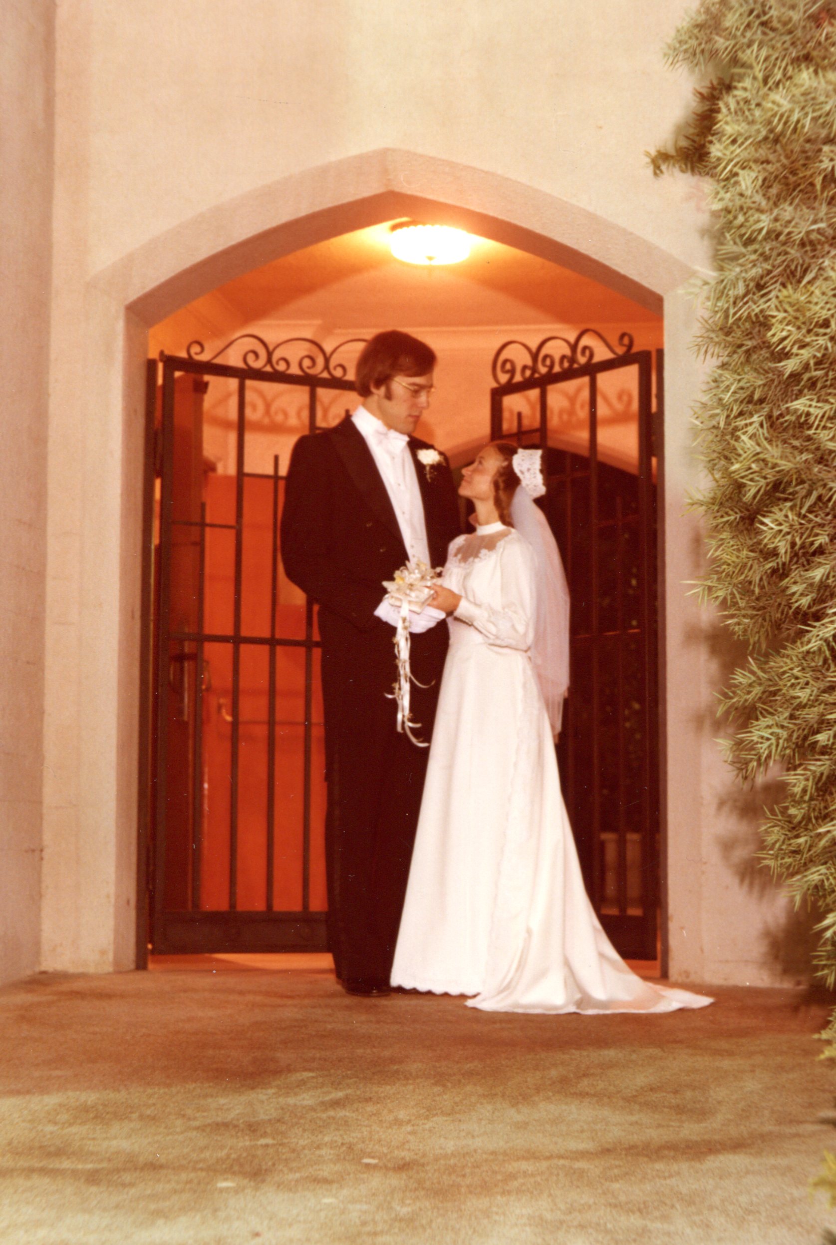 The wedding was extremely formal with the men wearing coattails and gloves and the women wearing floor-length dresses. Javi and I knew we didn’t want a wedding that was so formal but I still love love love the photos of my parents all dressed up like that, especially my dad with the gloves. Fantastic. My parents are awesome!