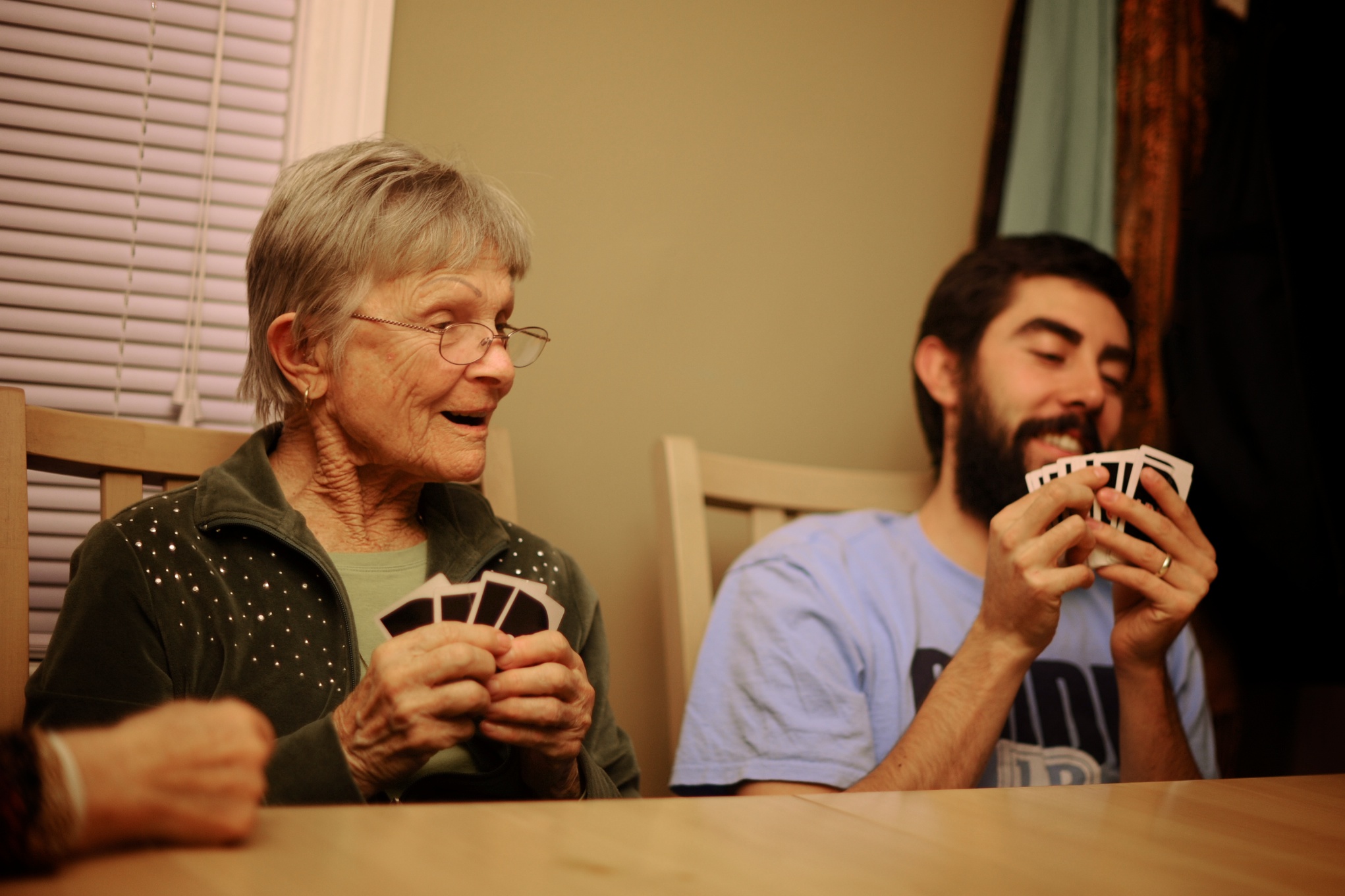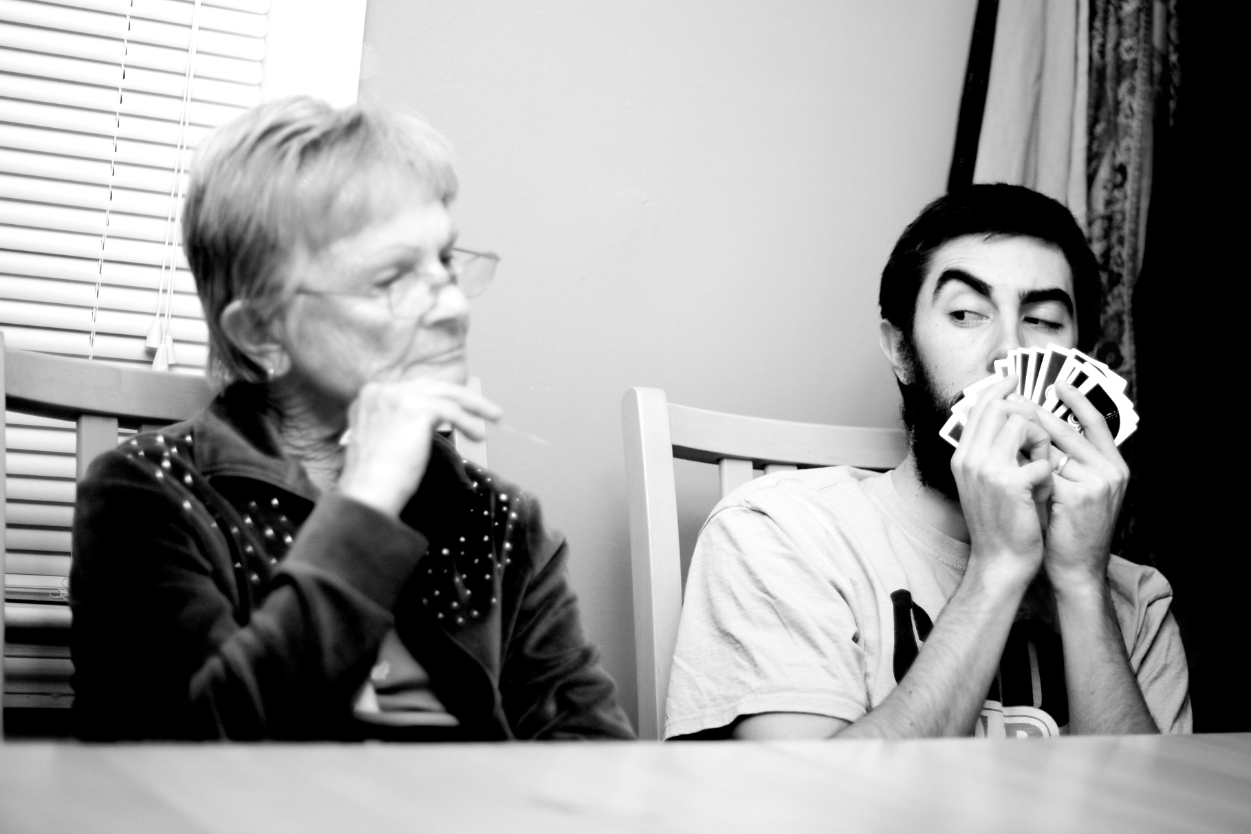 Now, on to the real post. Last night our family played a rousing game of Uno after a delicious dinner that my grandma prepared (turkey chili and cornbread! yum!). After translating throughout the entire dinner we decided to play a game of Uno, which doesn’t really require any translation. Everyone knew the colors (amarillo/yellow, red/rojo, green/verde, blue/azul) and the rest of the cards speak for themselves. By the end of the night everyone was saying “I’m sorry” and “lo siento” in the opposite language that they usually speak, and “noooooo!!!!” thankfully doesn’t need any translation. My grandma and Javier’s grandma sat together, which actually turned out to be pretty hilarious because one of them was always giving the other “+2,” “+4,” skip and reverse cards. It was a riot. Here are a few favorite photos from the night!