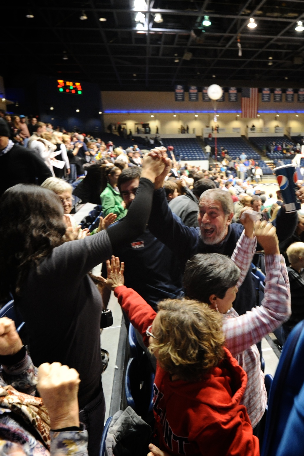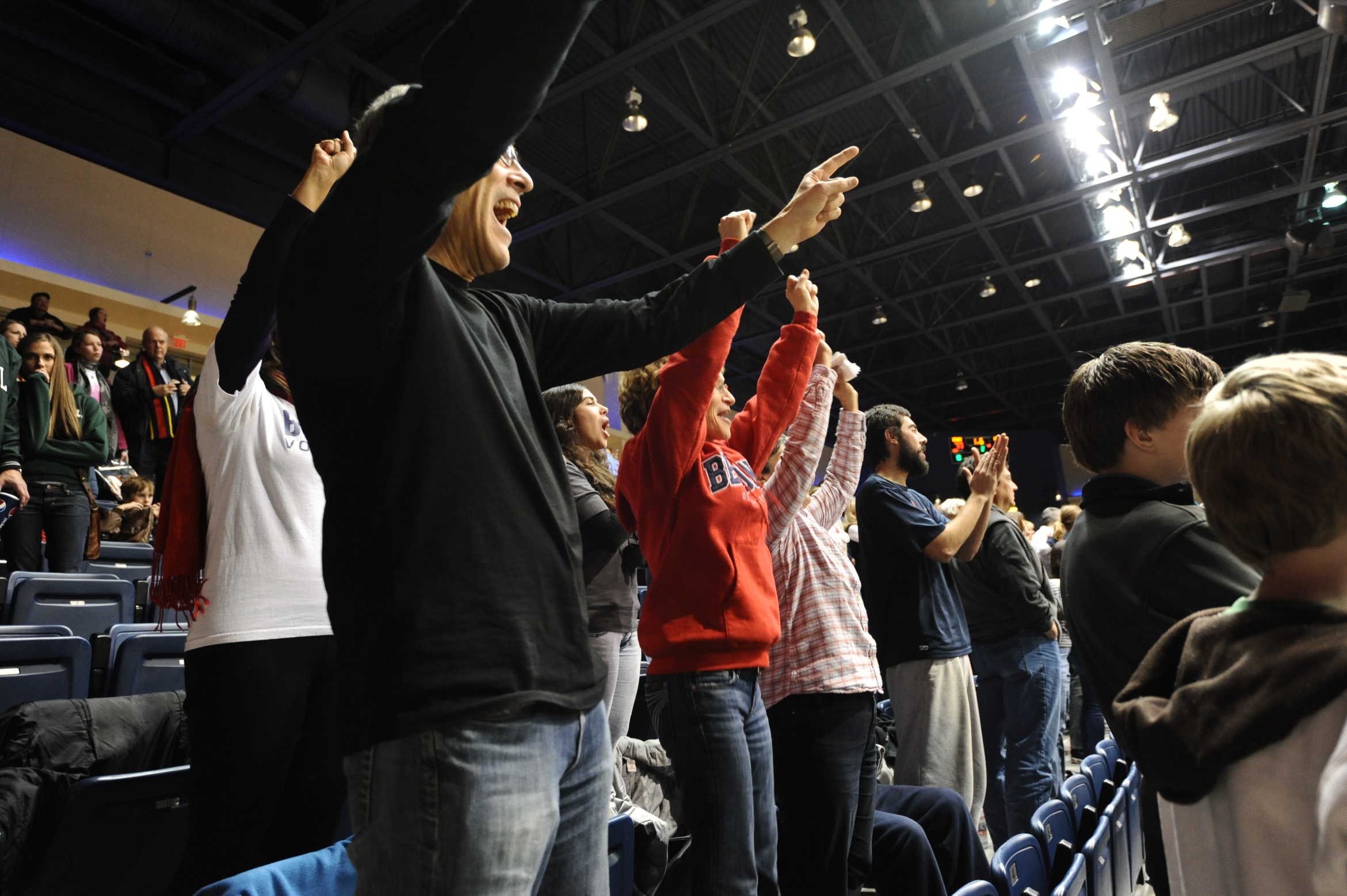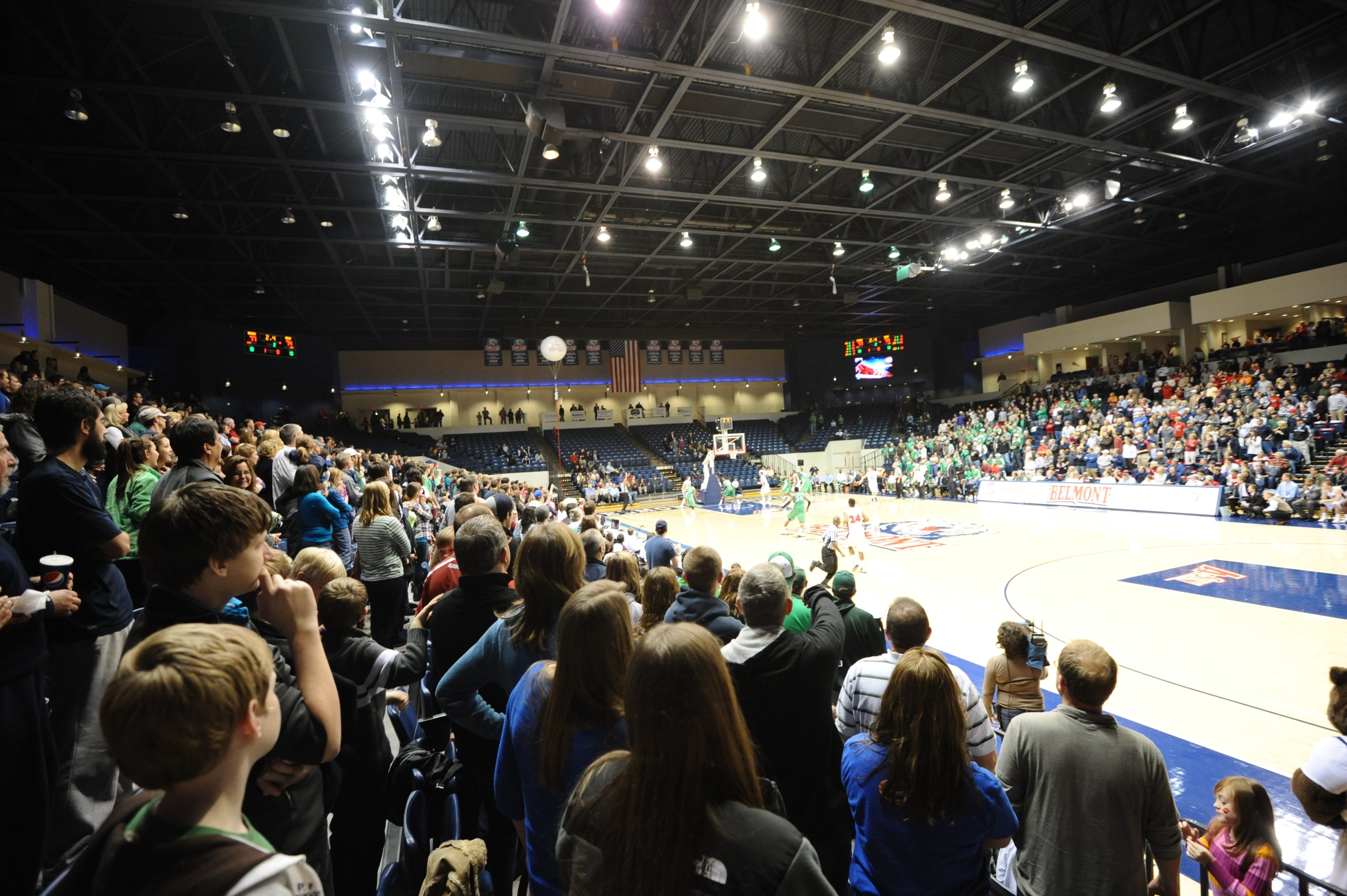 | This evening we all went out to the Belmont basketball game – Javier and I hadn’t been since we graduated. It was Javier’s family’s first time going to a basketball game here in the U.S. and great fun for everyone – my parents love going to see live games (Belmont, UofL or Vanderbilt). The gym had a ton of people – it wasn’t full but there were definitely more than I expected. Belmont played against Marshall and it turned out to be pretty close. Belmont was up almost the entire game and then in the last 2 minutes Marshall made a really close comeback and almost took the lead with 30 seconds left. It all turned out alright, but the victory at the end was so close that I knew I could get some good shots of the fam if we won, so I hopped out of my seat and stood on the side snapping photos of their reactions once the buzzer sounded and Belmont came out victorious. | Esta noche fuimos a un partido de basquet de Belmont – Javier y yo no hemos ido desde que nos graduamos. Fue el primer partido de basquet en los estados unidos para todos y fue divertido para todos – mis papas les encanta ir a partidos en vivo (Belmont, Vanderbilt o UofL). El gimnasio estaba lleno – no completamente pero casi, mucho mas de lo que yo esperaba. Belmont jugó contra Marshall y resultó ser un partido muy bueno. Belmont estaba ganando por mucho casi todo el partido y en los ultimos minutos Marshall llegó cerca y casi pasó a Belmont con solo 30 segundos en el partido. Al final, resultó bien para Belmont pero la victoria en la final fue tan tensa que sabía que podría sacar unas buenas fotas de la familia si ganaba Belmont, así que tome mi maquina y me puse al lado de todos y saque unas buenas fotos de sus reacciones una vez que tocó el pito final y Belmont salió victorioso. |