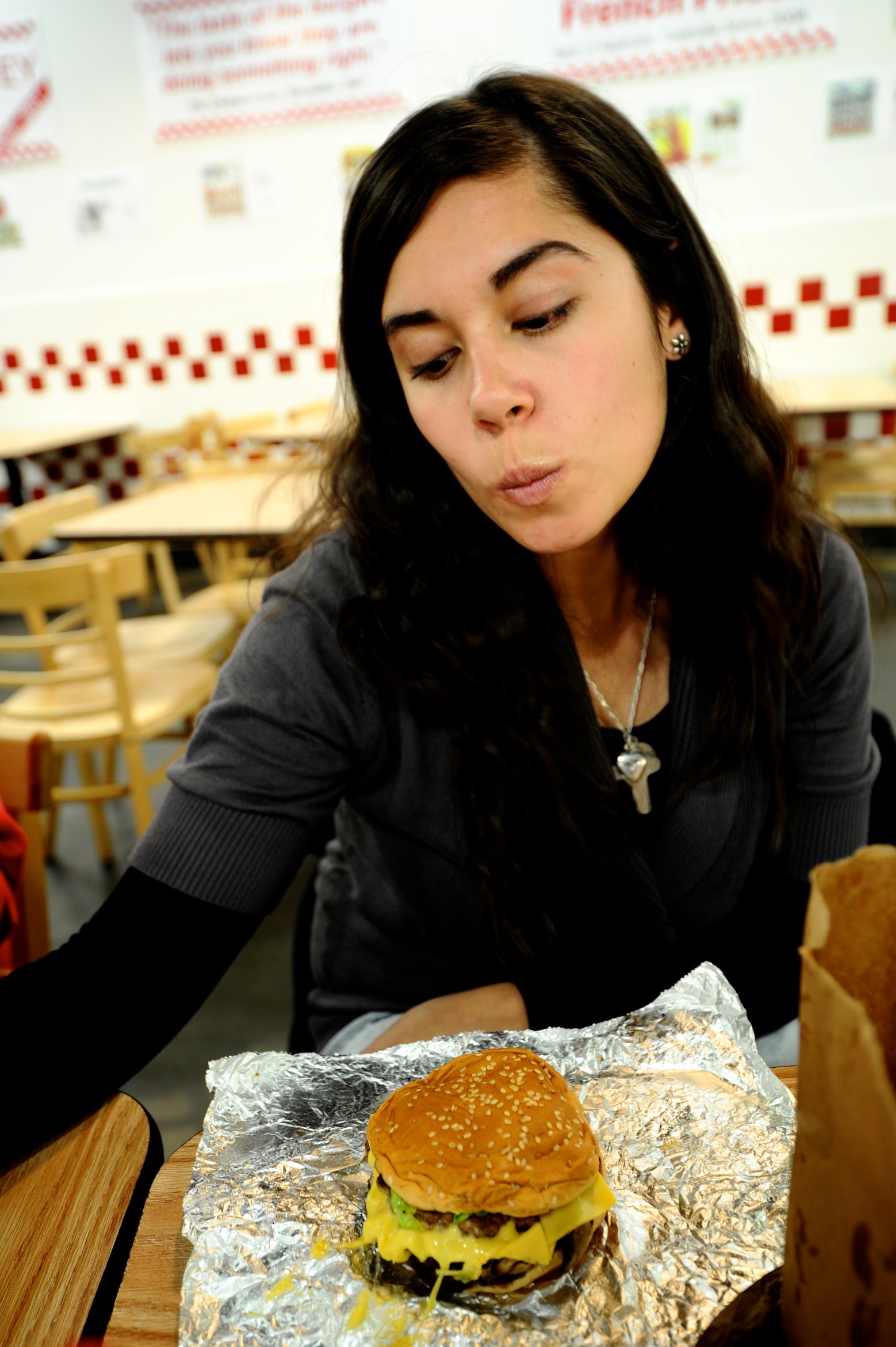 I love this picture of Macarena and the hamburger! They should have it on their wall as an advertisement.