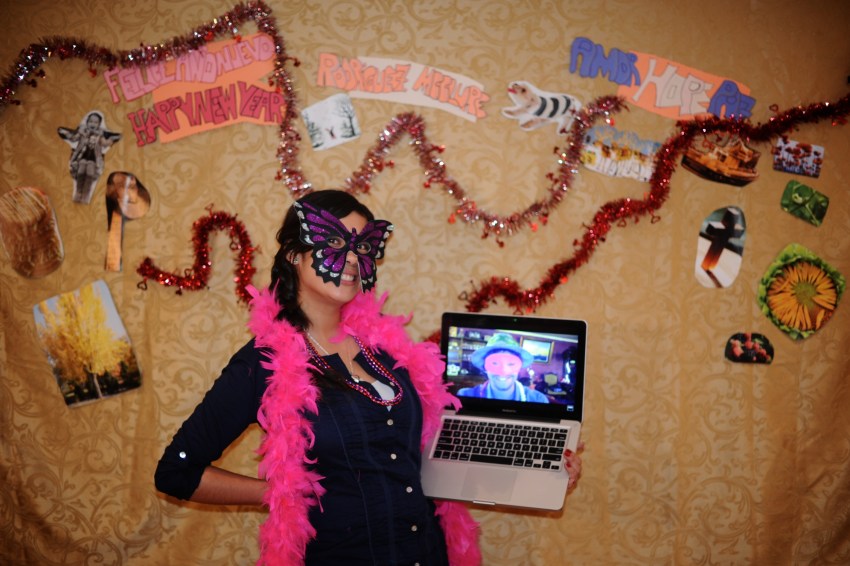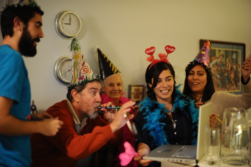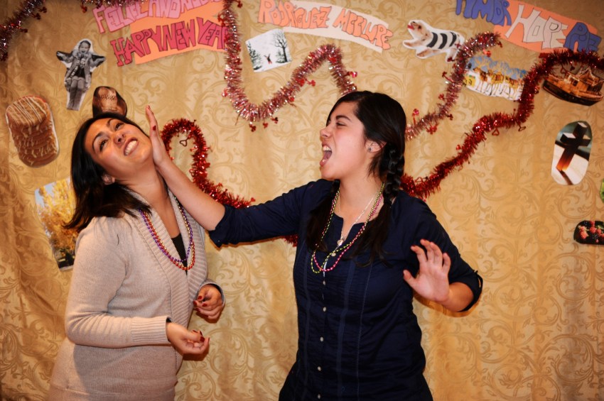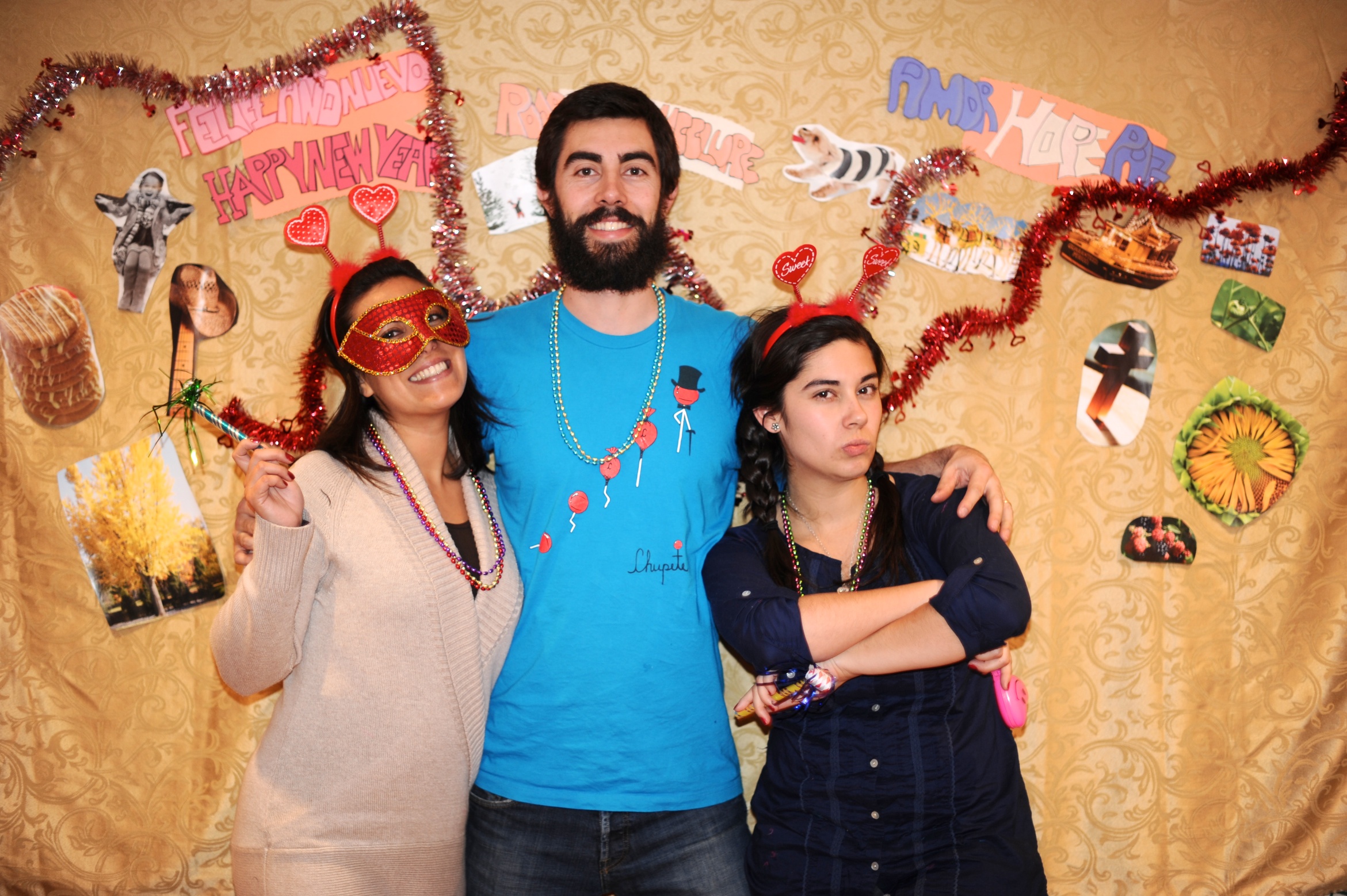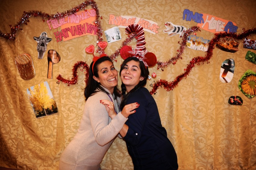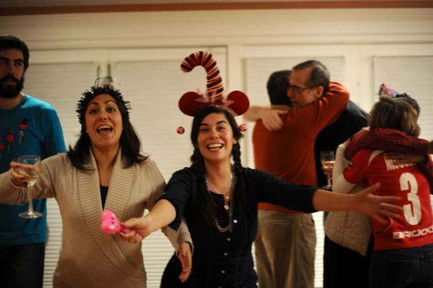 | Our night was simple and hilarious. Maca spent the whole day cutting out pictures of things we like from magazines for our photobooth backdrop – pictures of things like snow, dogs, lights, food, people laughing, etc. She also made little signs that said “Rodriguez McClure,” “amor hope paz” and “Feliz año nuevo.” We spent most of the evening laughing, drinking margaritas and posing in front of the photobooth while listening to cumbia music. Maca had her boyfriend Alex on video chat the whole time so he could party with us (which explains the number of photos she has with a computer in her hands). At midnight my dad poured the champagne and we all gave hugs and kisses and had another little cumbia dance party before we drove home. It was a great night!! Happy new year from our family to yours! Below is a selection of about 40 of our favorite photos of the night! | Nuestra noche fue sencilla y chistosa. Maca pasó el dia cortando imagenes de revistas para colocar en la pared para el photobooth – imagenes como nieve, perros, luces, comida, gente riendo etc. Ella tambien hizo señales que dijeron “Rodríguez McClure,” “amor hope paz,” y “feliz año nuevo.” Pasamos la noche riendo, bebiendo margaritas y posando en frente de la camara mientras escuchamos musica. Alex, el pololo de la Maca, estaba en el computador en video chat y entonces estaba en la fiesta con nosotros (que explica la cantidad de fotos de Maca con el computador en sus manos). A la media noche mi papa abrió la champaña y todos se dieron abrazos y besos unos a otros y tuvimos una pequeña fiesta de baile escuchando cumbia antes de salir para nuestra casa. Fue una noche genial! Feliz año nuevo de nuestra familia a la tuya! Aqui van unas 40 fotos favoritas de la noche! |
