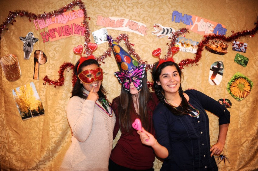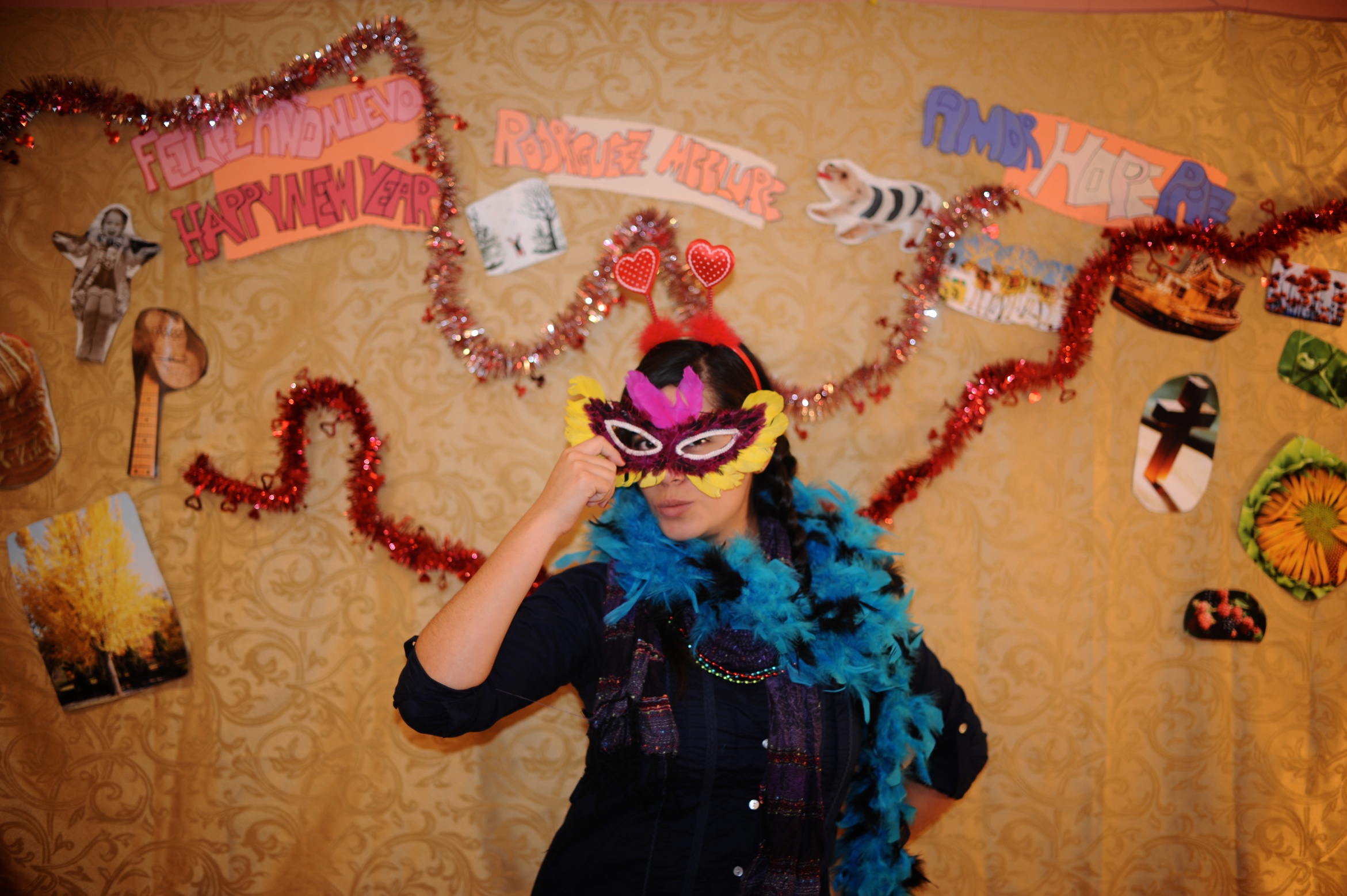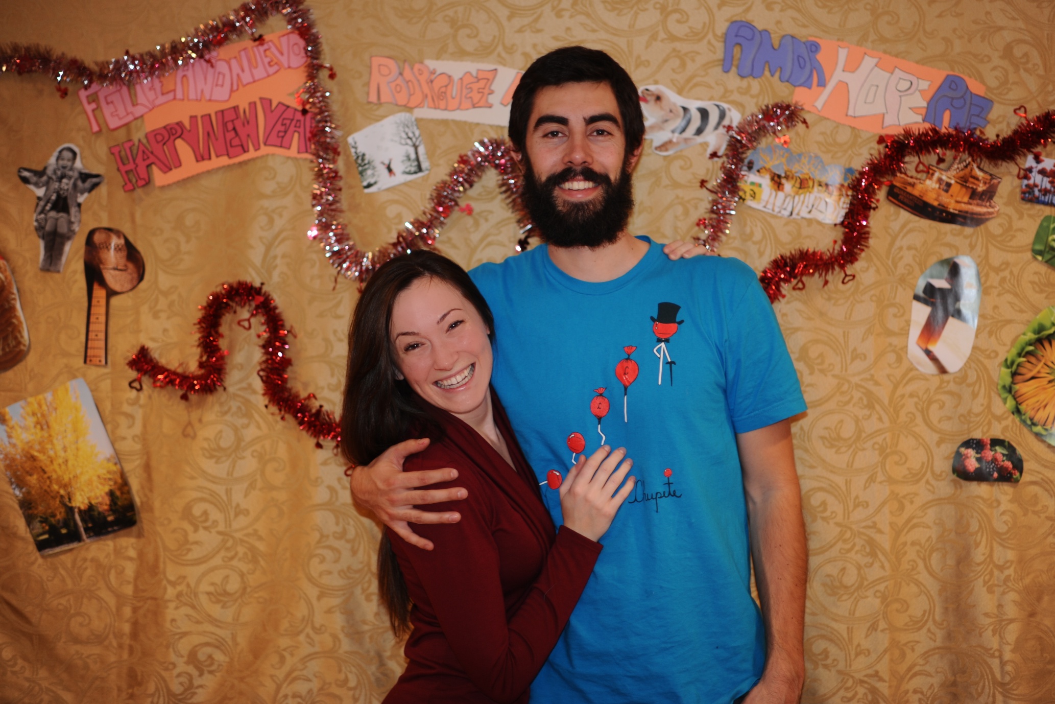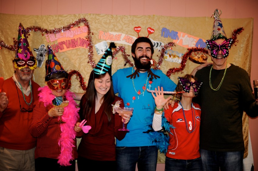 | Our night was simple and hilarious. Maca spent the whole day cutting out pictures of things we like from magazines for our photobooth backdrop – pictures of things like snow, dogs, lights, food, people laughing, etc. She also made little signs that said “Rodriguez McClure,” “amor hope paz” and “Feliz año nuevo.” We spent most of the evening laughing, drinking margaritas and posing in front of the photobooth while listening to cumbia music. Maca had her boyfriend Alex on video chat the whole time so he could party with us (which explains the number of photos she has with a computer in her hands). At midnight my dad poured the champagne and we all gave hugs and kisses and had another little cumbia dance party before we drove home. It was a great night!! Happy new year from our family to yours! Below is a selection of about 40 of our favorite photos of the night! | Nuestra noche fue sencilla y chistosa. Maca pasó el dia cortando imagenes de revistas para colocar en la pared para el photobooth – imagenes como nieve, perros, luces, comida, gente riendo etc. Ella tambien hizo señales que dijeron “Rodríguez McClure,” “amor hope paz,” y “feliz año nuevo.” Pasamos la noche riendo, bebiendo margaritas y posando en frente de la camara mientras escuchamos musica. Alex, el pololo de la Maca, estaba en el computador en video chat y entonces estaba en la fiesta con nosotros (que explica la cantidad de fotos de Maca con el computador en sus manos). A la media noche mi papa abrió la champaña y todos se dieron abrazos y besos unos a otros y tuvimos una pequeña fiesta de baile escuchando cumbia antes de salir para nuestra casa. Fue una noche genial! Feliz año nuevo de nuestra familia a la tuya! Aqui van unas 40 fotos favoritas de la noche! |