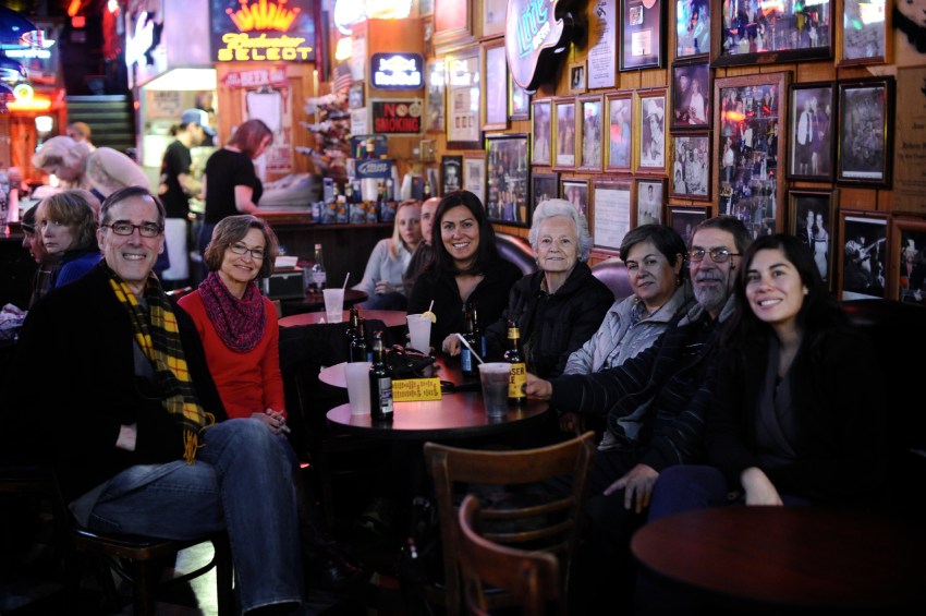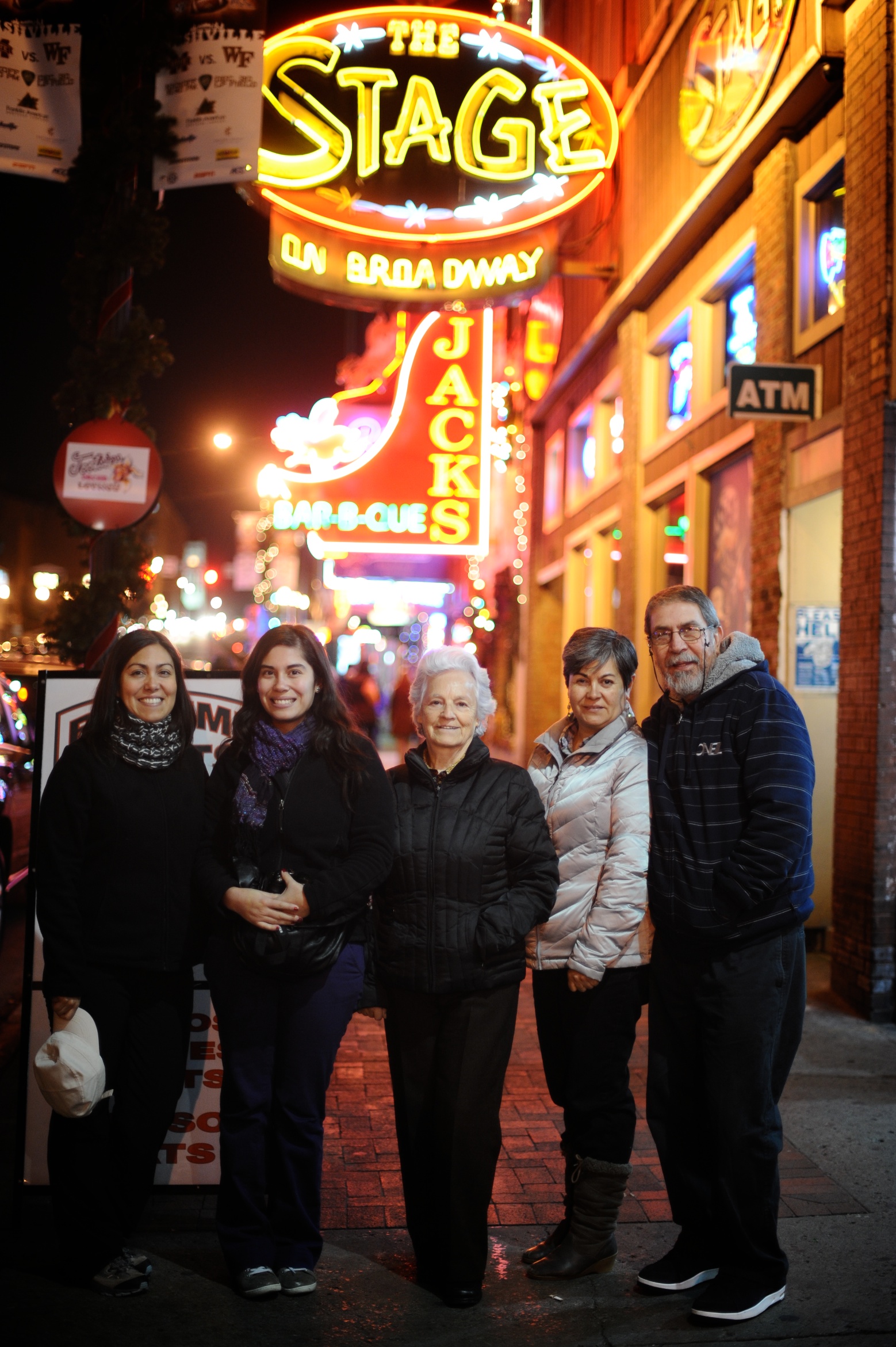 | Yesterday Javi and I spent the day as tourists in our own city. We went to Room in the Inn for a couple hours to do a tour of the new building – Macarena is a social worker in Chile and was hoping to take some of the ideas from RITI back to Santiago. It’s such an incredible place – if you’re a Nashvillian and haven’t heard much about RITI, please take a look at their website and check out all the amazing things they are doing in our city.After RITI we went to Javier’s office to give his family a tour of the building where he works. Country music for the most part doesn’t make it all the way to Chile, but Paula and Maca are certainly familiar with Taylor Swift and Lady Antebellum (in fact, Lady Antebellum is Maca’s favorite band) so it was fun to show them around the CMT building. After CMT we took a pit stop at Jacks – you really can’t have the whole Nashville experience without at least one meal at Jack’s barbecue on Broadway. His mom actually remembered Jack’s from their last trip to Nashville so she was especially excited to get back to try the bbq sauce again. After lunch and a trip to various trinket stores where they bought all their Nashville gadgets, we had planned to go to Robert’s to hear some music but we decided to come back at night instead to hear the Don Kelley band. One of the best things about Nashville in January and February is that there are hardly any tourists downtown, especially on weeknights, so we were able to grab two tables up front easily for the music. The Don Kelley band plays a mix of everything but mostly covers of songs from the 50s and 60s. Their guitar and slap bass players are just incredible – it actually felt really weird that we were watching them in such an empty Roberts – usually when we go see them the place it totally packed. Again, it’s definitely the off-season for Nashville tourism. |