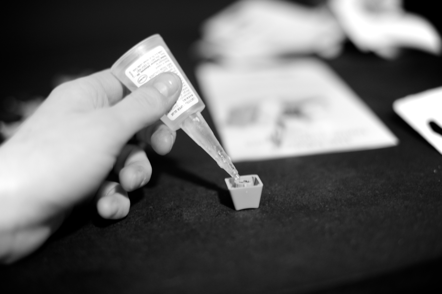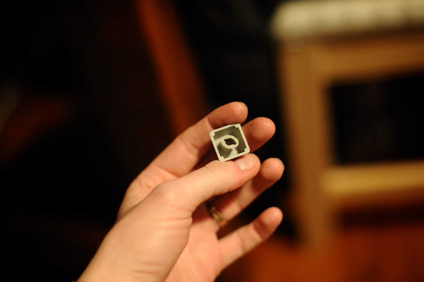 No lei las instruciones porque parecia (y fue) bien facil de hacer. Javi y yo fuimos a la tienda de articulos usados y compramos un teclado barato for $4 y 48 imanes pequenos en disco en Office Max. Limpiamos el teclado sacamos mis 48 teclas favoritas (todas las letras mas unos numeros y otros comandos como “power”, “enter”, “esc” – los esntretenidos) y Javi los corto y lijo para que quedaran planos en la parte de atras. Luego use superpegamento para pegar las teclas a los imanes y listo! Teclas magneticas. Sin el viaje a la tienda, me demore como 45 minutos en hacerlas. Se ven genial en la oficina, tengo que decir, y funcionan muy bien!