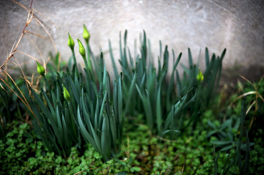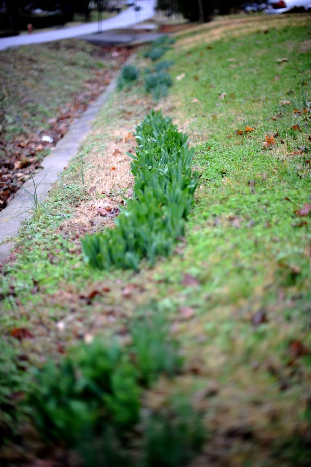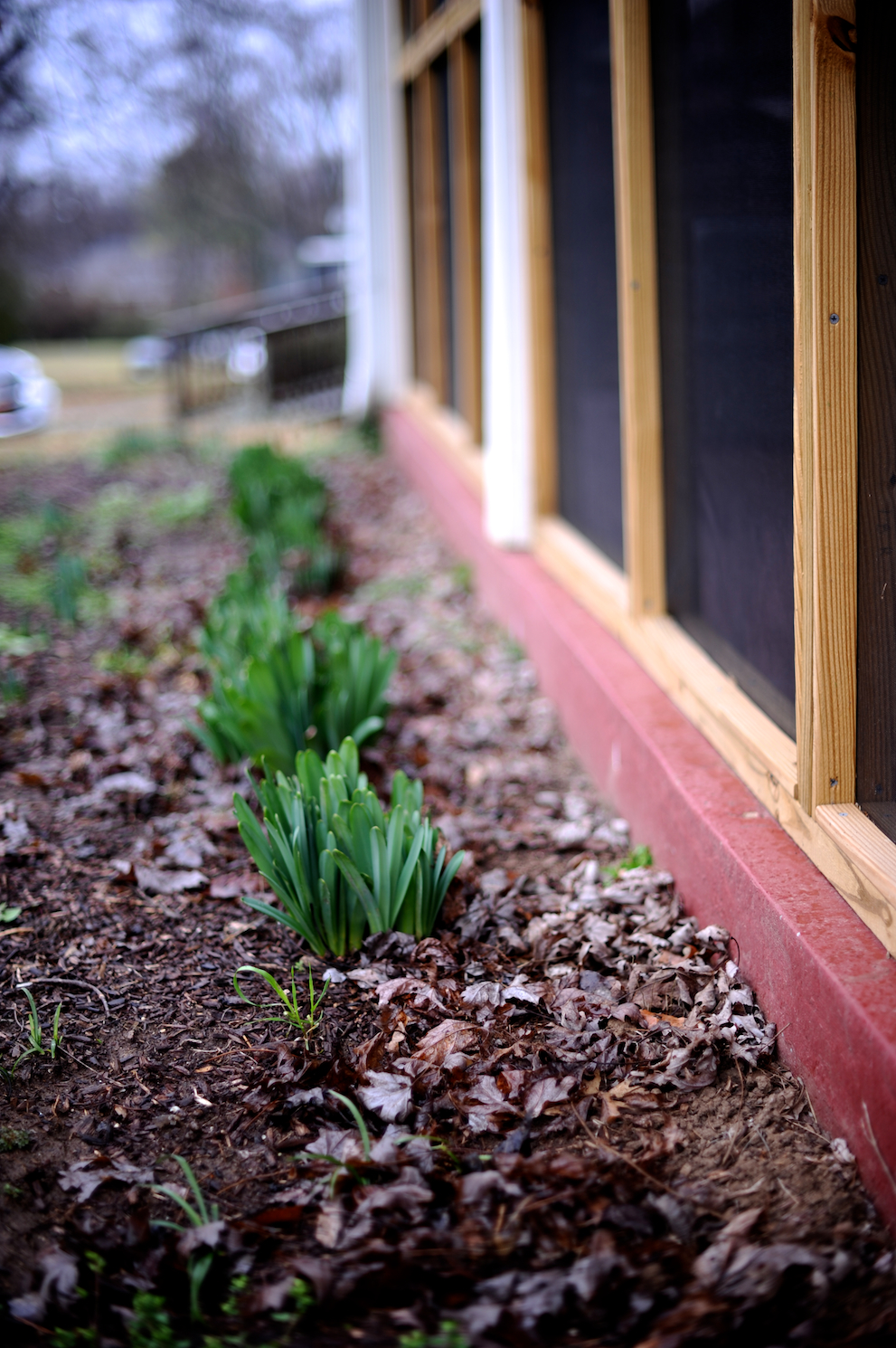 | Well, it looks like we’re actually going to just wait and see what it is that we have growing in our yard now that the weeds are gone, because it looks like we’ve got some determined plants that are going to come back whether we like it or not. The plants around our house are just as confused as we are about the seasons right now, and we’ve got buds and plants popping up all over the place to add a little color to our somewhat-dreary yard. We’ll still probably wind up re-doing the landscaping over the course of the spring/summer, but it’s always nice to have a few unexpected flowers! I just hope we don’t get another freeze and everything up and dies on us! For now, I’ll get photos of them as they bloom…It’s always exciting to see the first colorful signs of spring! | Bueno, parece que vamos a tener que esperar par aver que es lo que esta creciendo en nuestro jardin ahora que las malesas se han ido, porque parece que tenemos alguna plantas muy determinadas a volver a brotar lo queramos o no. Las plantas en la casa estan tan confundidas con el tiempo como lo estamos nosotros, y tenemos platas brotando por todos lados, lo que le da un poco de vida y color a nuestro triste jardin. Igual vamos a tener que re-hacer el jardin en algun momento, pero es bueno tener algunas flores inesperadas! Solo espero que no tengamos otro dia bajo cero que congele todo y lo haga morir! Por ahora sacare fotos mientras brotan….es siempre entretenido ver las primeras senales coloridas de la primavera! |