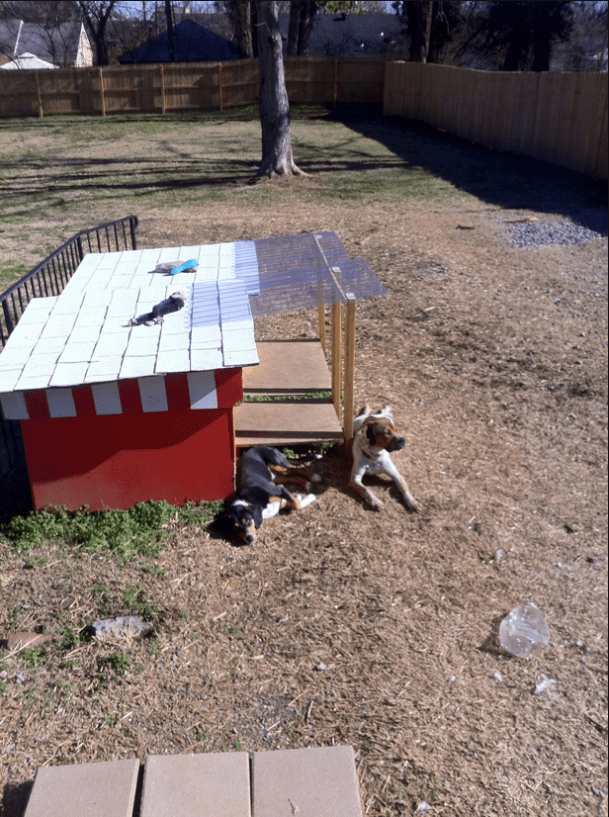 this was shortly after we moved in – those giant green plants are the plants Chupi destroyed, though they’re probably the green things that are growing back right now in the same spot. / Estas son las plantas que Chupi destrozo