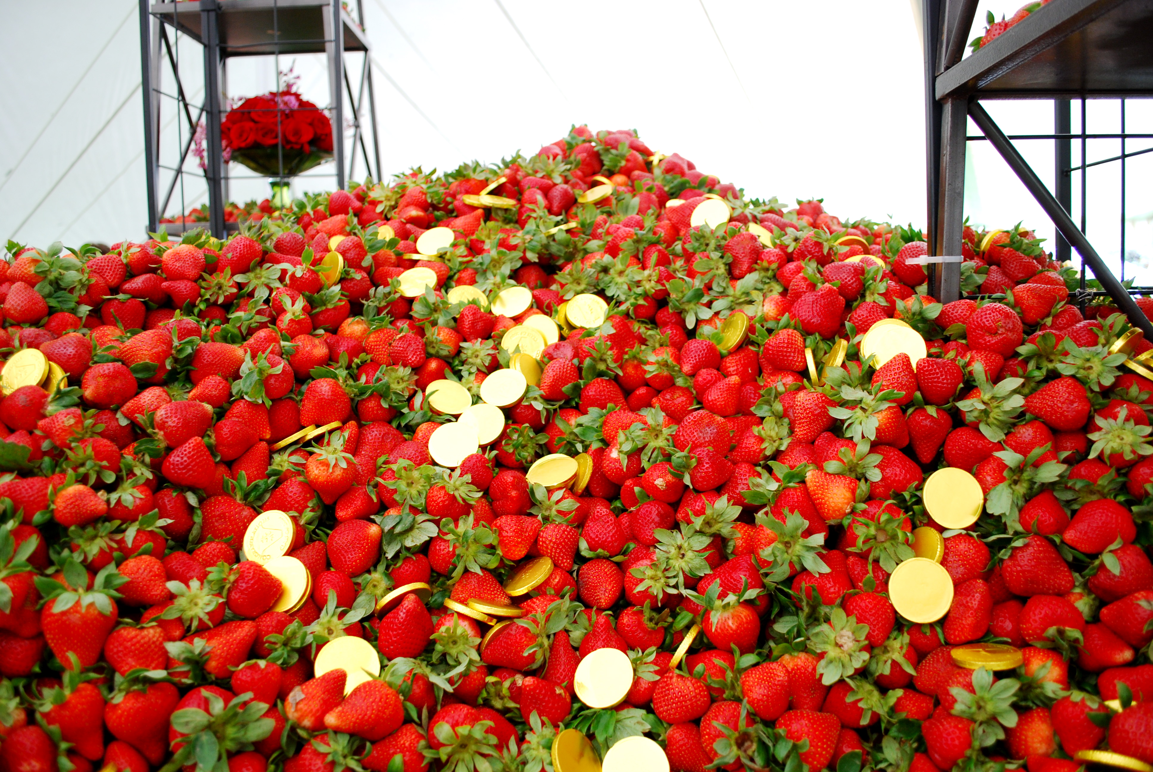 As I was reading I thought “How nice…strawberry and cheese trays.” UH! Then I saw the pics…HOW AWESOME! Mountains of strawberries and cheese!