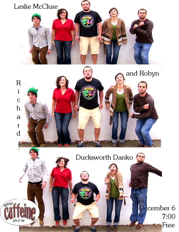 | One Thursday to break the monotony I left the house for the first time all week (seriously…besides taking the dogs on walks) to go do a photoshoot with the band Lulu Mae. The band members are all good friends of mine – I met Joel and Ben my freshman year at Belmont, Sarah is Joel’s wife, Adam is Ben’s brother and Jen is Adam’s wife. Joel and I used to play shows together around town – his band Ducksworth Danko would kick off the shows and then I’d get up to play with my dad. We made some pretty epic show fliers to hang around Belmont’s campus back in the day… | Para romper la monotonia, el jueves sali de la casa por primera vez (en serio….excepto las veces que sacamos a pasear a los perros) par air a una sesion de fotos con la banda Lulu Mae. Los miembros de la banda son todos Buenos amigos mios _ conoci a Joel y Ben en mi primer ano de Universidad, Sarah es la esposa de Joel, Adam es el hermano de Ben, y Jen es la esposa de Adam. Joel y yo soliamos tocar musica juntos – su banda, Duckworth Danko empezaban el show y luego mi papa y yo lo cerrabamos. Teniamos muy bueno posters de los shows, los que colgabamos en Belmont en esos tiempos…. |