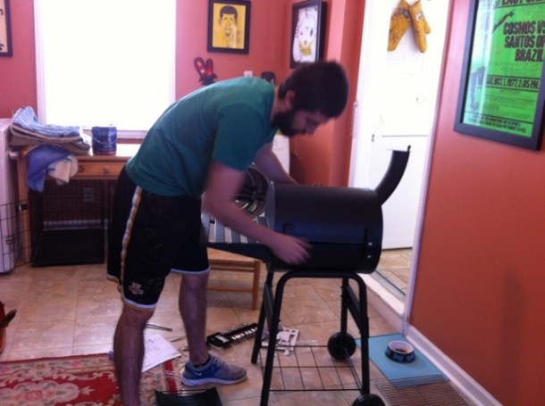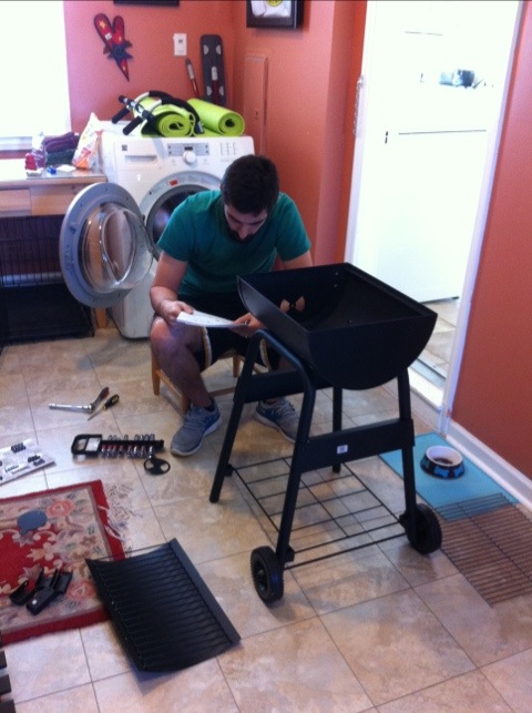 | Over the weekend Javier pretended it was summer. We went to Lowes Saturday morning to buy some spackle to fix something in the office and we left with a brand new charcoal grill and a weed whacker. Javi spent the afternoon assembling his new grill and giving our lawn a much, much needed manicure. This was the first time since Javi rebuilt the walkway that we could actually see the walkway with neatly trimmed grass squares and it looks awesome! The yard looks great now and the backyard is home to the new grill so we really are all set for the summer…minus having to finish out the semester and then write my thesis and get it in by June 1. Ah! | Durante el fin de semana Javier pretendio que era verano. Fuimos a Lowes el Sabado en la manana a comprar estuco para arreglar algo en la oficina y salimos con una parrilla y una orilladora. Javi se paso la tarde Armando la parrila y dandole un muy necesitado corte a nuestro jardin. Esta era la primera vez desde que Javi construyo nuestro sender que pudiamos ver el sendero con cuandrados de pasto cortados a la perfeccion y se ve genial! El jardin se ve genial ahora y el patio es la nueva casa de la parrilla asi que estamos listos para el verano….menos la parte de tener que terminar el semestre y escribir mi tesis y entregarla el primero de Junio. AH!!! |