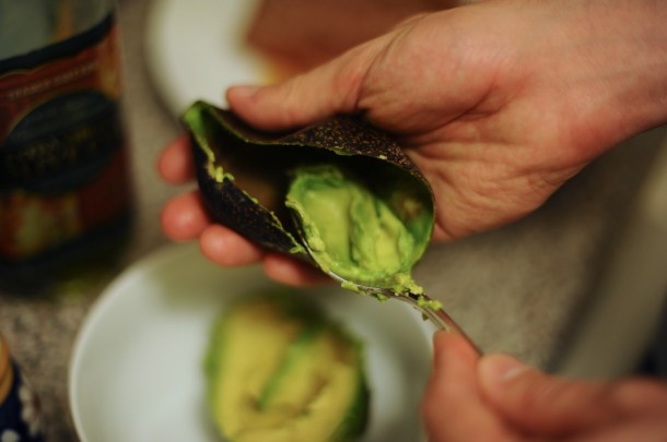 Scrape the avocado out into a bowl. Add a bit of salt, a bit of garlic salt and a bit of olive oil. Mash it with a fork! and done! (add more salt or garlic or olive oil if you think it needs it. Up to you!)Let us know what you think! |