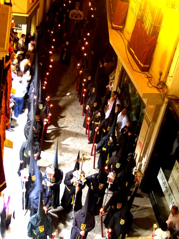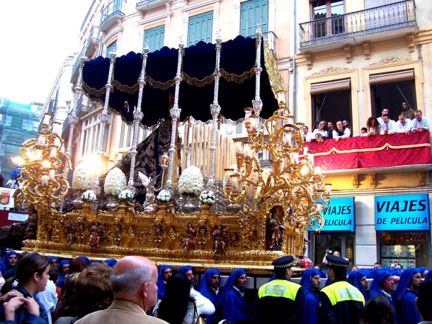 | Six years ago I spent Semana Santa, or Holy Week, traveling the south of Spain with my good friend Camila. She and I had a week off from classes and decided to take a train down to Malaga, Granada and Sevilla for one of the best and most beautiful weeks of my entire study abroad experience. The weather in Santiago de Compostela had been miserable and cold for the entire month of March, so when we got down to warm and sunny Sevilla we really felt like we had gone to heaven for holy week. Andalucia might as well be an entirely different country from Galicia – the weather, culture, food and dialect were all completely different from what we had been experiencing in SdC up north. We went to the beach in Malaga, visited the Alhambra in Granada and went to a Good Friday service in the cathedral of Sevilla. It was definitely one of the most colorful areas of the world I’ve been to, right up there with Valparaiso, Chile. The buildings were all blue, pink, purple, yellow, green and the Andalusian architecture was breathtaking. |