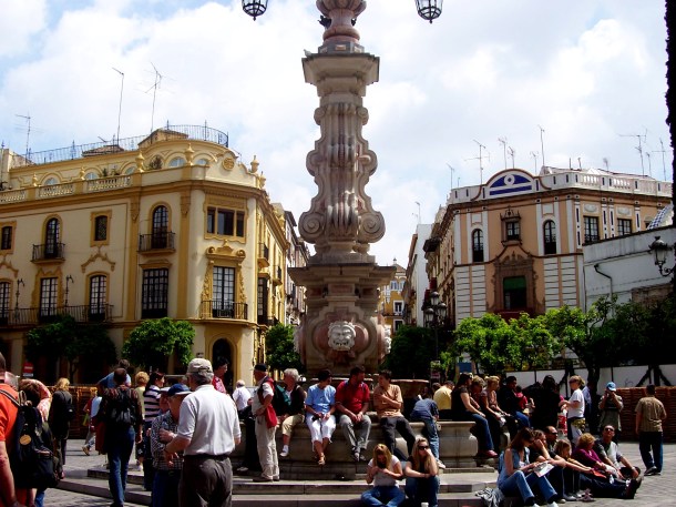 Seis anos atras, pase Semana Santa viajando por el sur de Espana con mi Buena amiga Camila. Teniamos una semana de sin clases y decidimos tomar un tren con destino a Malaga, Granada, y Sevilla para pasar una de las mas lindas y mejores semana de toda mi experiencia estudiando en el extranjero. El tiempo en Santiago de Compostela habia estado malisimo y super frio durante todo el mes de Marzo, asi que cuando llegamos a las soleada y caliente Sevilla, en verdad sentimos como si hubiesemos ido al paraiso durante Semana Santa. Andalucia puede verse como un pais completamente distinto a Galicia – el tiempo, la cultura, la comida, y el dialecto son totalmente diferentes de lo que habiamos vivido en el norte en Santiago. Fuimos a la playa en Malaga, visitamos la Alhambra en Granda y fuimos a la misa de Viernes Santo en la catedral de Sevilla. Era definitivamente uno de los lugares mas coloridos del mundo, que yo habia visitado, a la misma altura de Valparaiso, Chile. Los edificios eran todos azules, rosados, morados, amarillos, verdes y la arquitectura Andaluza te quitaba el eliento. |