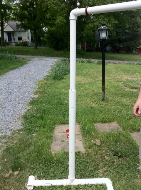 | I could write the step by step, but I think for this project pictures are better than words. Plus the writing would get boring since is just a bunch of pipes and connectors, nothing really exciting. One piece of advice, before you glue anything, make sure you are not going to wish you didn’t glue it…. so think about it first. You want to be able to take it apart so that it’s portable. Here are a bunch of pictures of the different pieces and the final product! Note: we aren’t actually going to use a 2-tone backdrop. This was just what we had in the house when we were testing it out. It turned out pretty great!! | Podria escribir el paso a paso, pero creo que para este proyecto las fotos son mejores que las palabras. Aparte que la escritura se pondria aburrida ya que es un monton de tuberias y conectores, nada muy emocionante. Un consejo, antes de pegar cosas con el cemento de PVC, asegurate que no vas a necesitar separar las piezas y desear que no lo hubieses pegado…asi que piensa bien primero. La idea es que sea portable y se peuda desarmar. Asi que aqui van un monton de fotos con las diferentes piezas! |