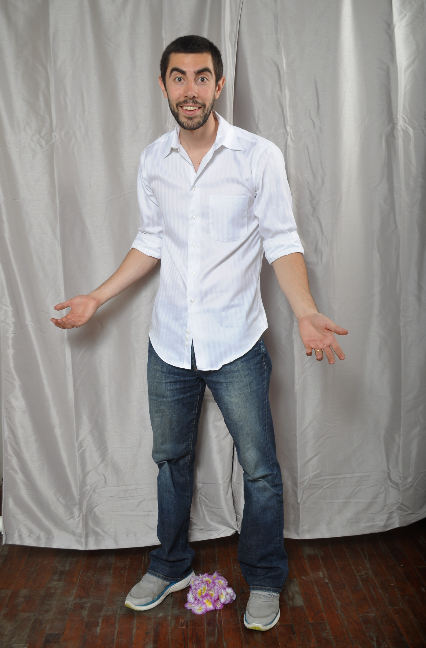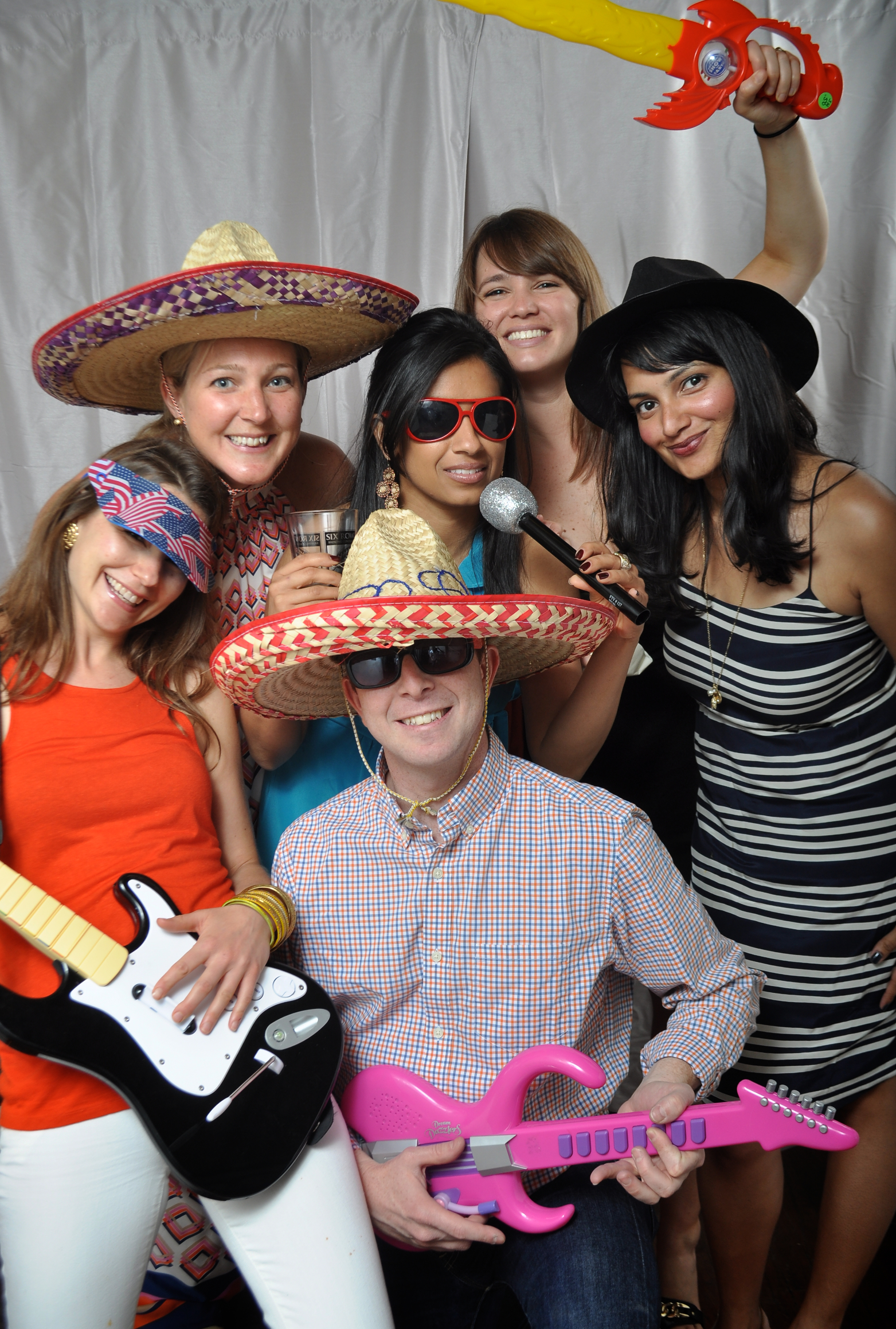 | I can’t remember the exact time that the idea of a photo booth caught Leslie’s attention – but she loves photo booths now! It might have been at our friend Robyn’s wedding – I think that was the first wedding photobooth we experienced. We have been to several events with different kinds of photo booths – from the small box kind where you get the instant picture to take home to the kind with a backdrop and the camera on a tripod, which we had at our wedding. We love the idea of having a set place to take pictures and let people be as silly as they want. It is also a great way to document all the people that came to your event – just like taking the high school photo but a million times more fun! You never know what combination of people are going to wind up together in the photobooth – at our wedding, for example, we came away with a collection of photos where people who never knew each other before the reception were posing with one another using all kinds of props and acting ridiculous. The problem we had with setting up a photo booth for the events that we shoot was….setting it up! We have the lamps and flashes and tripods, props and curtain for the backdrop but we always had a problem figuring our how to set up a support system for everything. | No recuerdo el momento exacto en que la idea de una photo booth (no se que nombre tiene en espanol…cabina de fotos??) llamo la atencion de Leslie – pero ahora le encantan! Pudo haber sido en la boda de nuestra amiga Robyn – creo que esa fue la primera boda que fuimos que tenia un photo booth. Hemos ido a varios eventos con diferentes tipo de photo both – desde el tipo que te metes en una caja y sacas una foto instantanea al tipo que tiene un mantel de fondo y la camara en un tripode, que es el tipo que nosotros tuvimos en nuestra boda. Nos encanta la idea de tener un lugar destinado a sacar fotos y dejar que la gente se comporte como locos si quieren. Tambien es genial poder documentar toda la gente que vino al evento – como sacar fotos de la escuela pero un millon de veces mas entretenido! Nunca sabes que combinacion de gente a a aparecer junta en una foto – en nuestra boda por ejemplo, quedamos con una coleccion de fotos donde gente que no se conocia antes de la fiesta posaban juntos en posiciones ridiculas y actuando como locos. El problema que teniamos cuando necesitabamos instalar la photo booth era…instalar la photo booth! Teniamos las lamparas y los flashes, el tripode, accesorios para fotos y manteles para el fondo pero simepre teniamos problemas instalando todo y en los distintos lugares sin tener un sistema para colgar manteles como fondo. |