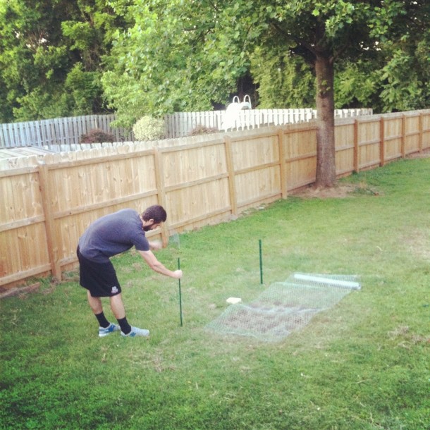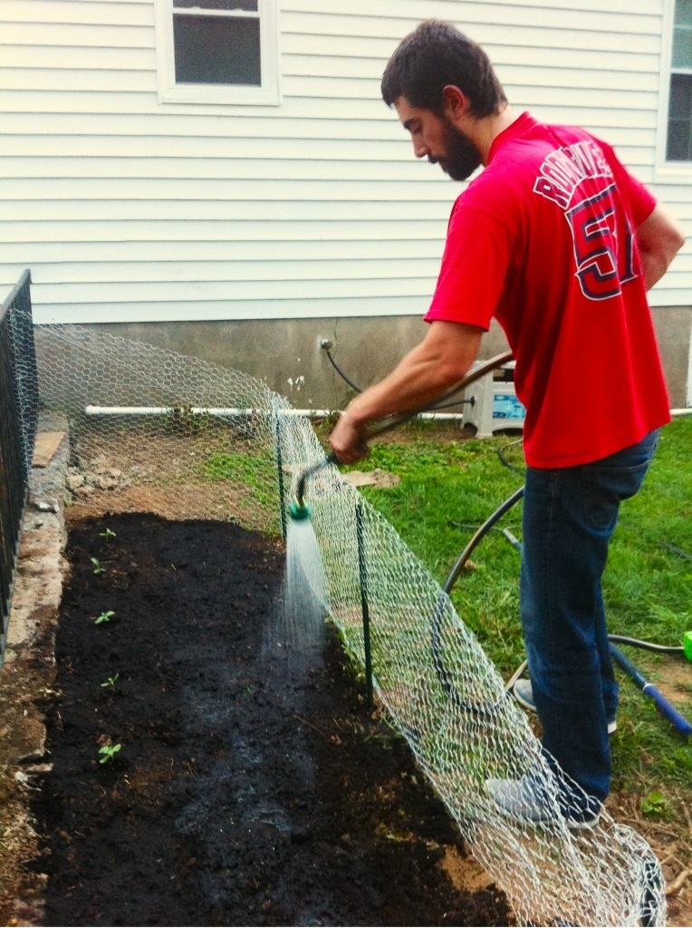 Javi is having so much fun with this garden. Every morning he goes out to check on the plants and water them (with his iphone blaring the Earl Scruggs pandora station) and comes in with a report on which plants are doing well etc. He wanted a garden long before we bought the house and it’s great that we finally have it. I just can’t wait to actually eat some of our own home grown veggies! Javi lo esta pasando bien con la huerta. Cada manana se levanta a revisar las plantas y a regarlas (con su telefono tocando Earl Scruggs en Pandora) y vuelve a la casa con un reporte sobre que plantas estan creciendo y como va todo, etc… El queria una huerta mucho antes de comprar la casa y es genial que finalmente la tenemos. No puedo esperar a poder comer algunos de nuestros propios vegetales!