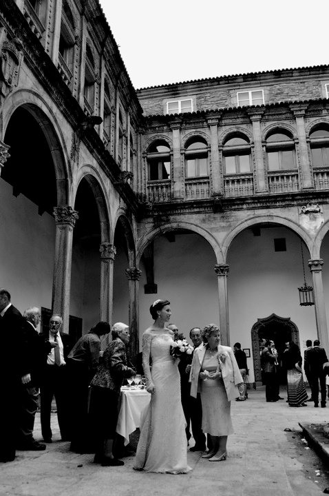 Tara’s wedding was one of those crazy weddings that you have to experience to believe. Tara really did get that insanely beautiful almost royal wedding that girls dream of. First of all, the wedding was in Santiago de Compostela…so that just speaks for itself. The ceremony was in the church that Jorge attended as a boy in a little town outside of Santiago. The church was charming and pretty much exactly how you’d picture a little stone Galician church in the countryside. I sang in the choir loft with two string musicians for accompaniment. The church carried the music beautifully – the acoustics were incredible and everything was just perfect. Also, the great thing about having a wedding in a church like this (and, for that matter, having a reception in a place like the Parador…) is that there is absolutely no need for any decorations because everything is so beautiful on its own. The reception was held at the Parador, Santiago’s famous Hotel de los Reyes Católicos which is right next to the Cathedral. This place…I can’t even describe how breathtakingly beautiful it is. It originally served as the Royal Hospital, was built in 1499 and is now considered the oldest hotel in the world. The reception had balconies that look out to the cathedral…I could have stayed out on a balcony all night soaking up the view. In Spain the meal is the highlight of the reception and we spent at least two hours eating this fabulous 5-course meal with incredible gourmet seafood and, true to Tara’s taste, chocolate brownies (American style) instead of wedding cake. It goes without saying that we partied until we couldn’t anymore and of course I had my camera with me so we made a little photobooth that I ran through the night. La boda de Tara fue una de esas bodas increibles que tienes que vivir para creer. Tara en verdad tuvo una de esas ceremonias preciosas casi de realeza que las ninas siempre suenan tener. Primero que nada, la boda fue en Santiago de Compostela…asi que eso ya habla por si solo. La ceremonia fue en la iglesia que Jorge visitaba de nino en un pueblito a las afueras de Santiago. La iglesia era muy linda y practicamente exacto a los que te  imaginas cuando dicen una pequena iglesia de piedra en el campo Galiciano. Yo cante con el coro en el balcon junto a dos de cuerdas que em acompanaron. La iglesia sonaba precioso – la acustica era increible y todo era simplemente perfecto. Lo otro genial sobre tener la ceremonia en una iglesia como esta (y tambien tener una fiesta en un logar como el Parador…) es que no hay necesidad de decorar porque todo es precioso tal cual. La recepcion fue en el Parador, un famoso hotel de Santiago, Hotel de los Reyes Catolicos que queda justa al lado de la Catederal. Esta lugar…no puedo describirlo, te quita el aliento lo hermoso que es. Originalmente era el Hospital Real, construido en 1499 y es ahora considerado el hotel mas antiguo del mundo. La fiesta tenia balcones con vista a la catederal…me pude haber quedado toda la noche admirando la vista. En Espana la comida el la parte mas importante de la fiesta y pasamos por lo menos 2 horas comiendo esta fabulosa cena de 5 platos con comida del mar y, para el gusto de Tara, brownies de chocolate (estilo Americano) en vez de torta. No es necesario decir que la fiesta duro hasta que no podiamos mas y por su puesto yo tenia mi camara para sacar fotos toda la noche.