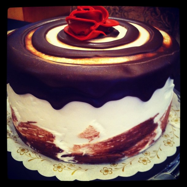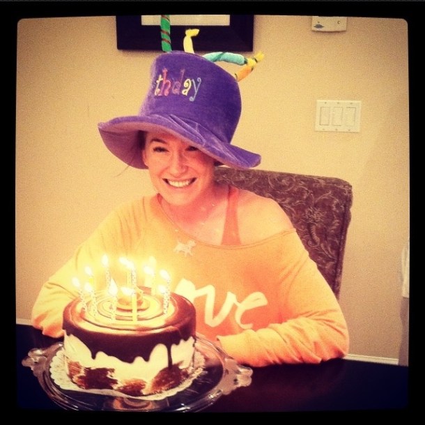 The rest of the time we were either drinking and catching up with my aunts Shelley and Regena, playing scrabble with my uncle Warren, playing music with my uncle John or hanging out in the hot tub with the cousins. Shelley invited a bunch of friends over on Saturday for a little dinner party get-together complete with music in the garage – and one of her friends brought a cake for my birthday! She didn’t actually know me and I’m not sure she knew it was for my bday, but they put candles on it and I wore the infamous birthday hat (everyone wears this when it’s their bday in the fam) – it was awesome! As you can probably tell from the photos, the cake was DELICIOUS. El resto del tiempo lo pasamos tomado algo y conversando con mis tias Shelley y Regena, jugando scrabble con mi tio Warren, tocando musica con mi tio John, or disfrutando en Jacuzzi con mis primos. Shelley invito un grupo de amigos a su casa el Sabado para una pequena fiesta/cena/junta donde tambien hubo una practica de musica en el garage – y una de sus amigas trajo una torta de cumpleanos! Ella no me conocia y no estoy segura si sabia que era mi cumpleanos, pero le pusieron velas a torta y me pusieron en gorro de cumpleanos (todos tienen que usarlo cuando es su cumpleanos) – fue genial! Y ustedes pueden ver por la fotos, la torta estaba BUENISIMA.