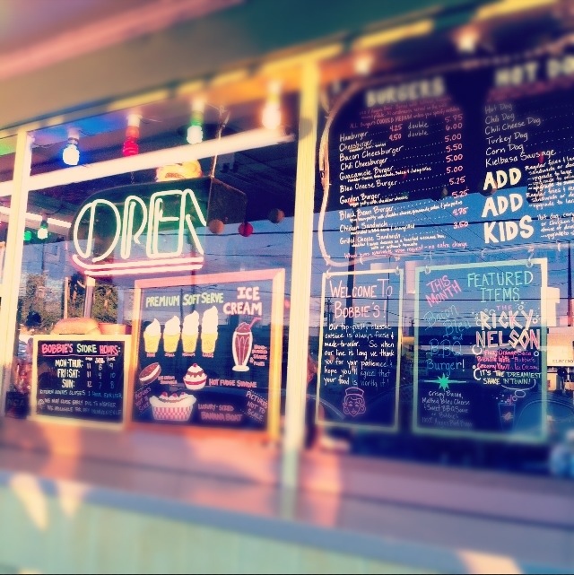 Going to Bobbie’s is like going back in time, to a place where the high school kids in the 50s would hang out during the summer, or a perfect spot for a first date after a drive-in movie. We decided it was really a place we need to visit more often…and we were so enamored that we came back the next weekend (…last night). I can’t believe that we used to live so close to it, we passed by at least twice a week, and we never stopped. Dumb us! But now we know and Bobbie’s Dairy Dip will be serving many more chocolate dipped cones to Los Rodriguez! Ir a Bobbie’s es como volver en el tiempo. A un lugar donde los chicos del liceo en los anos cincuenta iban a pasar un rato en el verano, o el lugar perfecto para una cita despues de ver una pelicula en el autocinema. Decidimos que es un lugar donde tenemos que ir mas seguido…y teníamos tantas ganas de volver que volvimos el fin de semana siguen (…anoche) No puedo creer que vivimos tan cerca, y lo pasamos por lo menos dos veces por semana, y nunca paramos. Somos tontos! Pero ahora sabemos y Bobbie’s servira muchos mas conos banados en chocolate a Los Rodriguez!